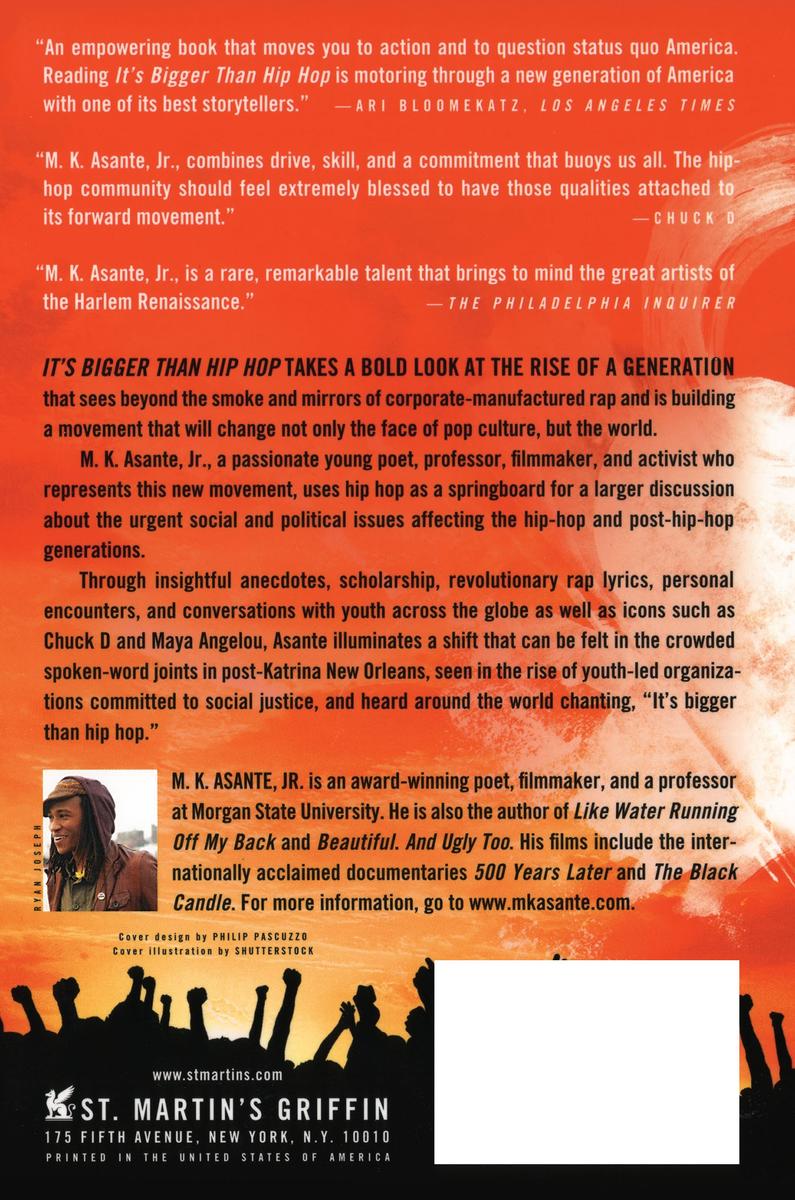 Through insightful anecdotes, scholarship, revolutionary rap lyrics, personal encounters, and conversations with youth across the globe as well as icons such as Chuck D and Maya Angelou, Asante illuminates a shift that can be felt in the crowded spoken-word joints in post-Katrina New Orleans, seen in the rise of youth-led organizations committed to social justice, and heard around the world chanting "It's bigger than hip hop."