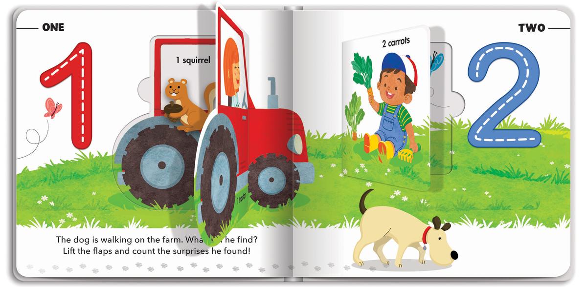 Follow the die-cut grooves with your finger and lift the flaps of this interactive board book that helps develop hand-eye coordination and fine motor skills. Each page encourages hands-on learning and teaches toddlers about numbers.