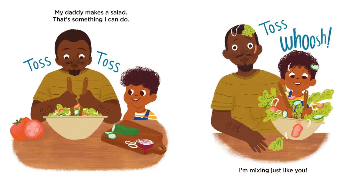 When their family prepares for a picnic, our little toddler tries to help. They want to do everything the grownups are doing, but the results are...not ideal. Mud, lemon juice, and water end up everywhere! But this little one isn't the only one making a mess-being "just like you" runs in the family!