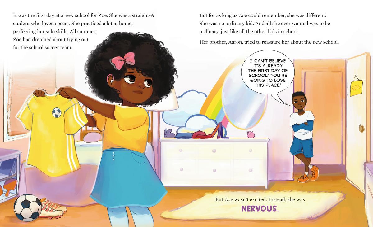 ItÕs the first day of school for Zoe, a young girl with hearing loss who dreams of playing on her schoolÕs soccer team. But, self-conscious of her hearing aids, Zoe is too nervous to try out. With the help of and perspectives from new friends, what begins as a bumpy, anxiety-filled start for Zoe, soon transitions into an eye-opening experience about what it means to be differentÑand what it means to be extraordinary.