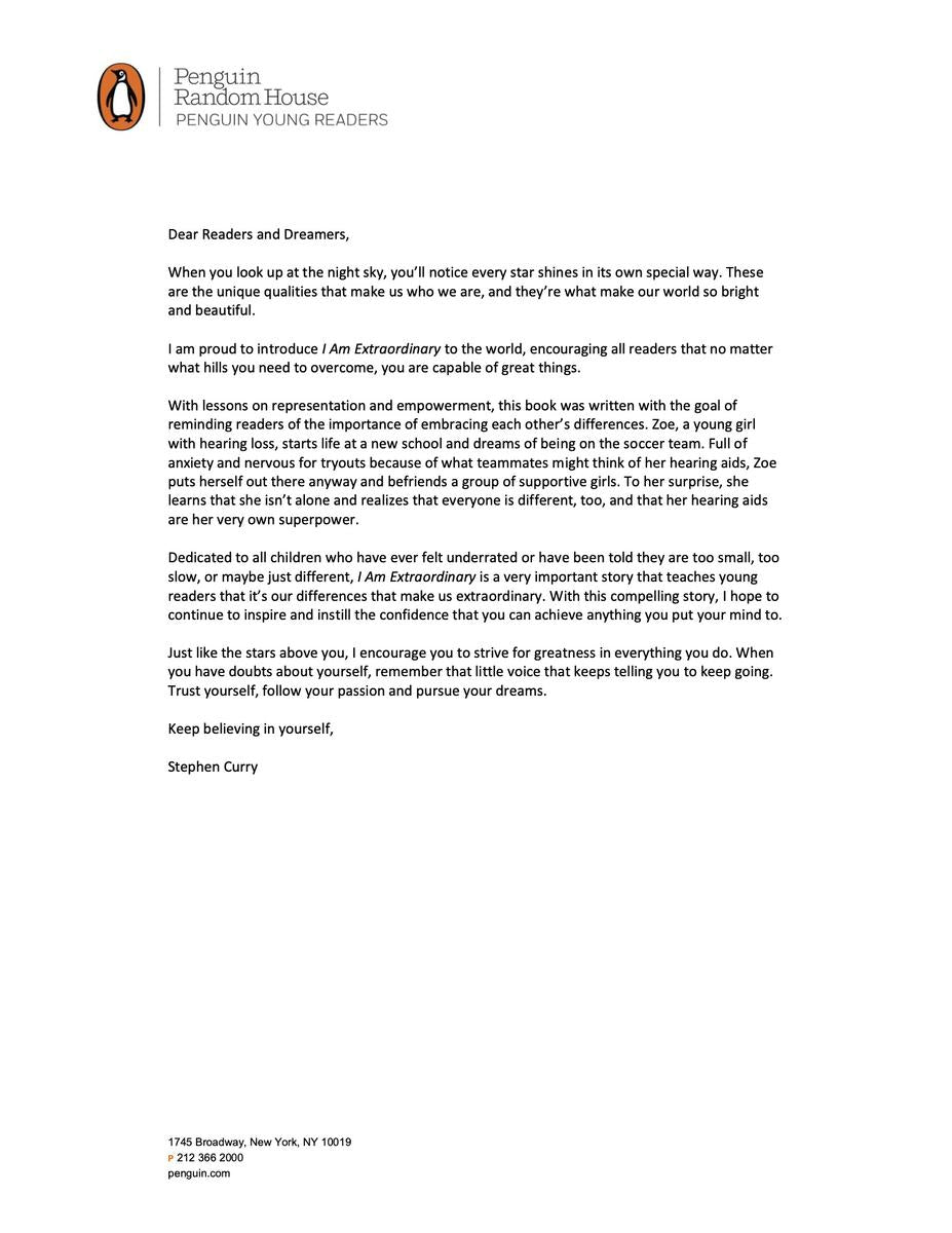 In his sophomore picture book, NBA superstar Stephen Curry encourages kids to embrace the differences that make them extraordinary!