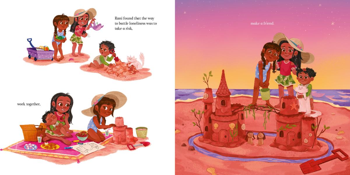 So one morning, Rani decides to leave for the beach in search of adventure. She's sure it will be the opposite of her life in the palace: wonderful, marvelous, fun! But in the world outside the palace walls, Rani isn't a princess anymore, she's just a kid who's not so great at building sandcastles. And what she finds there is something she didn't even know she was looking for: a friend.