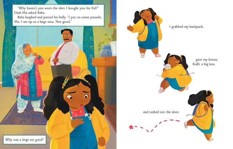Meet Zubi: a joyful Bangladeshi girl excited about her first day of school. But when Zubi sees her mother frowning in the mirror and talking about being “too big,” she starts to worry about her own body and how she looks. As her day goes on, she hears more and more people being critical of each other’s and their own bodies, until her outburst over dinner leads her family to see what they’ve been doing wrong—and to help Zubi see that we can all make the world a more beautiful place by being beautifully ourselves.