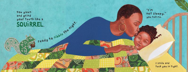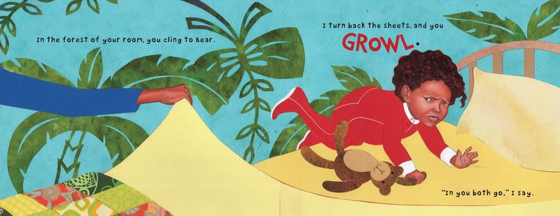 Mommy needs to wrangle her sweet creature in bed so that the whole family can sleep. From tigers to squirrels to snakes, the little boy dodges around his bedtime, until he is tired enough to finally sleep. His imaginative animal friends weave their way through the illustrations, eventually joining him in curling up for the night.