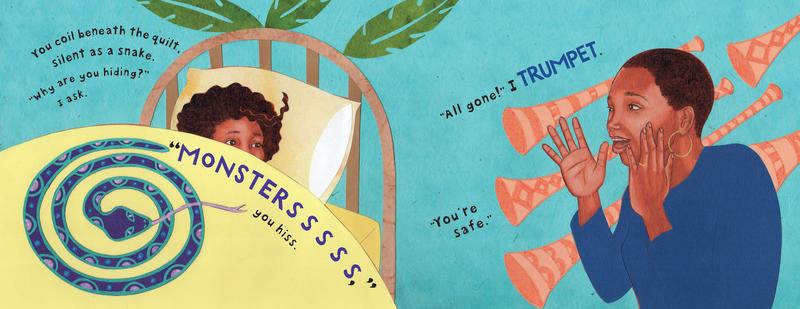 "The mother's loving understanding is demonstrated by how she works with her child's rich imagination, never slipping into admonishment. As such, children will engage with the pajama-clad tot's antics and be soothed by the book's positive tone. A fabulous interpretation of an everyday battle."—Booklist, STARRED review