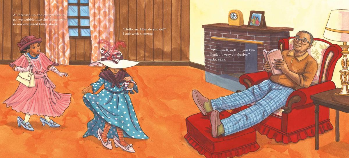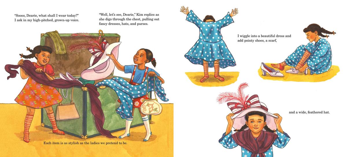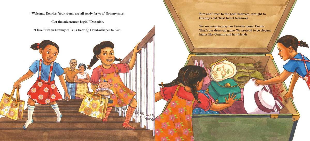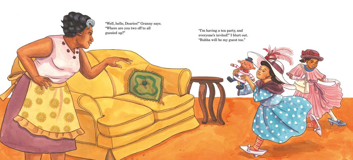 Carla and her sister Kim love visiting their grandparents’ home, where they can always count on having something fun to get into, like Granny’s old chest full of treasures! Dressed up in mounds of beautiful dresses, sparkling jewels, and fancy gloves, Carla decides the day wouldn’t be complete without a tea party for the girls’ special guests, Granny and Doc.