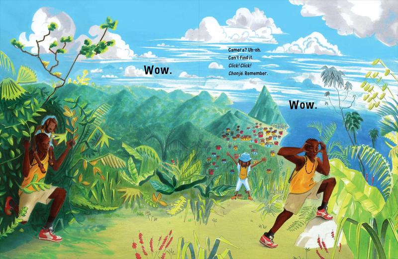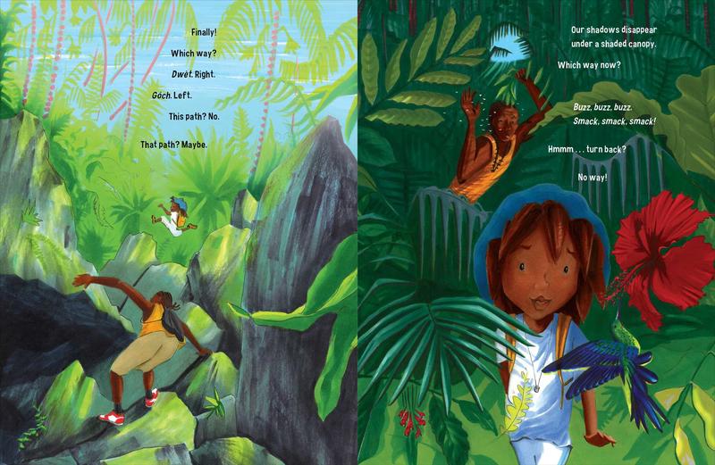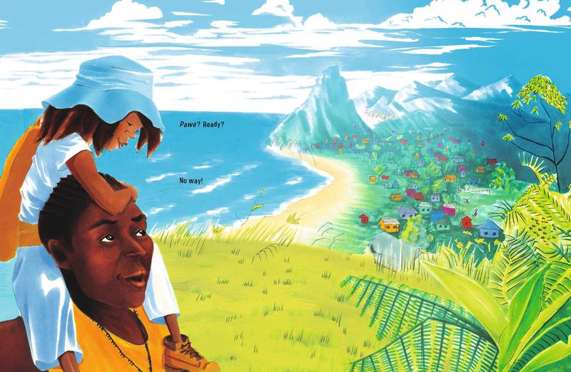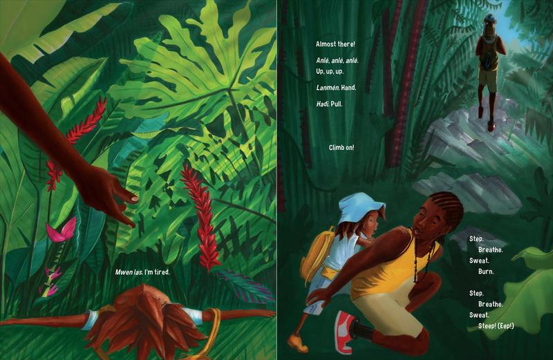 ) have teamed up again! Baptiste’s humorous and tender text, with a sprinkling of Creole words straight from the Pitons, and Jacqueline Alcántara’s vibrant and evocative illustrations capture the wonder and emotions experienced on the trail and the special relationship between a parent and a child.