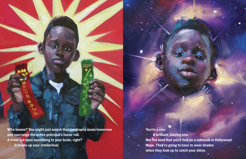 This rhythmic, read-aloud title is an unbridled celebration of the self-esteem, confidence, and swagger boys feel when they leave the barber’s chair—a tradition that places on their heads a figurative crown, beaming with jewels, that confirms their brilliance and worth and helps them not only love and accept themselves but also take a giant step toward caring how they present themselves to the world. The fresh cuts. That’s where it all begins.
