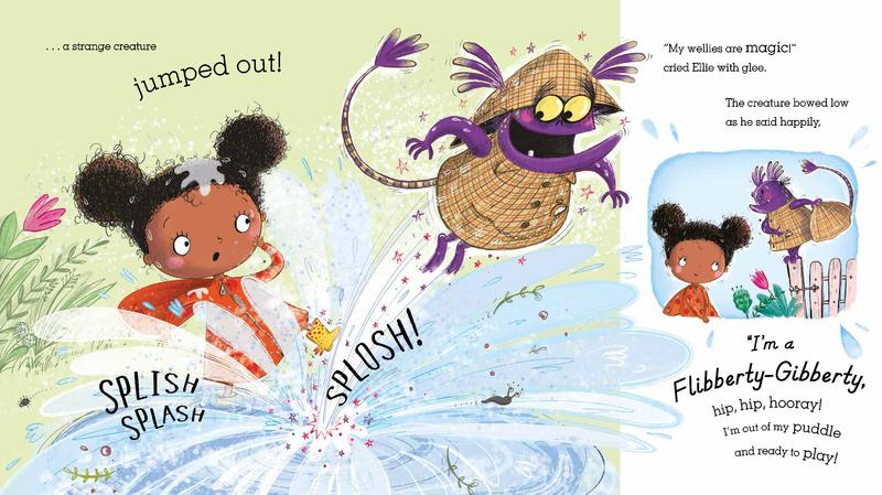 . Ellie Pengelly is fed up and bored, until she gets a pair of MAGICAL new wellies!  When Ellie goes out to explore in her new wellies she jumps into a puddle but . . . something jumps out! When the strange Flibberty-Gibberty starts juggling with jam, guzzling and gobbling food and squeezling toothpaste he makes quite a mess! Will Ellie manage to clean up all the mess before mum gets home? Action-packed storytelling is perfectly paired with Nick East's high-energy illustrations in this fantastic picture book that fizzes and whizzes with fun! Children will love the Flibberty-Gibberty – a wonderful character who is similar to Dr Seuss's