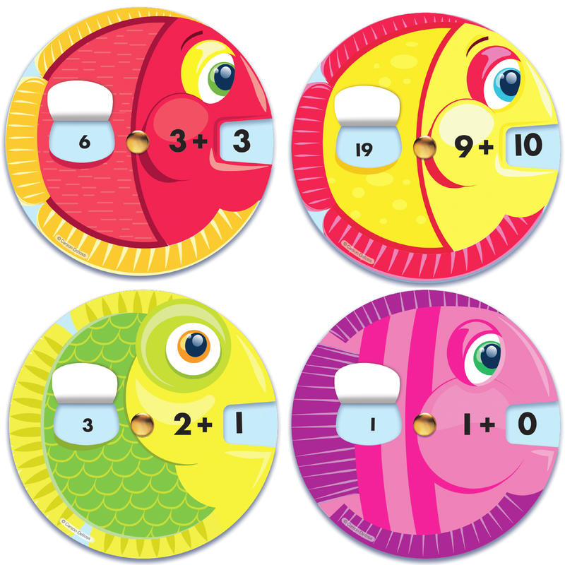 Foster the home-to-school connection and provide fun ways to practice addition facts with these fun math flash-card wheels. The EZ-Spin™: Addition Facts set includes 18 two-piece addition fact wheels, including +0 to +12, strategies such as doubles, and several mixed practice sets.