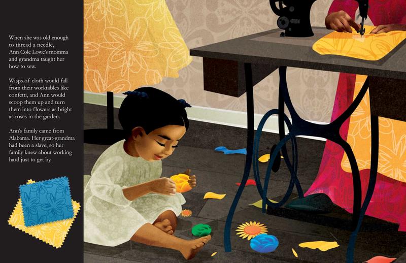 As soon as Ann Cole Lowe could walk, her momma and grandma taught her to sew. She worked near her momma in their Alabama family shop in the early 1900s, making glorious dresses for women who went to fancy parties. When Ann was 16, her momma died, and Ann continued sewing dresses. It wasn't easy, especially when she went to design school and had to learn alone, segregated from the rest of the class. But the work she did set her spirit soaring, as evidenced in the clothes she made, including Jackie Kennedy's wedding dress and Olivia de Havilland's dress at the Oscars when she won for Best Actress in