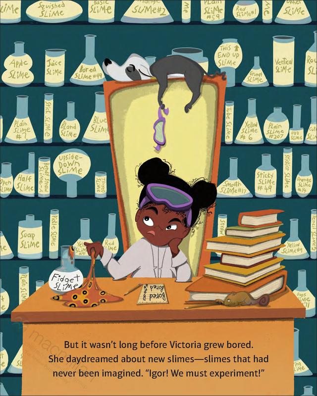 Joy Keller’s clever text and Ashley Belote’s humor-filled art combine to create a fun picture book twist on horror movies like Frankenstein and The Blob, that also explores the scientific method and the importance of recording observations and results. The author has also included a couple of Victoria’s best slime recipes, although you'll notice the secret formula that brought her slime to life is missing.