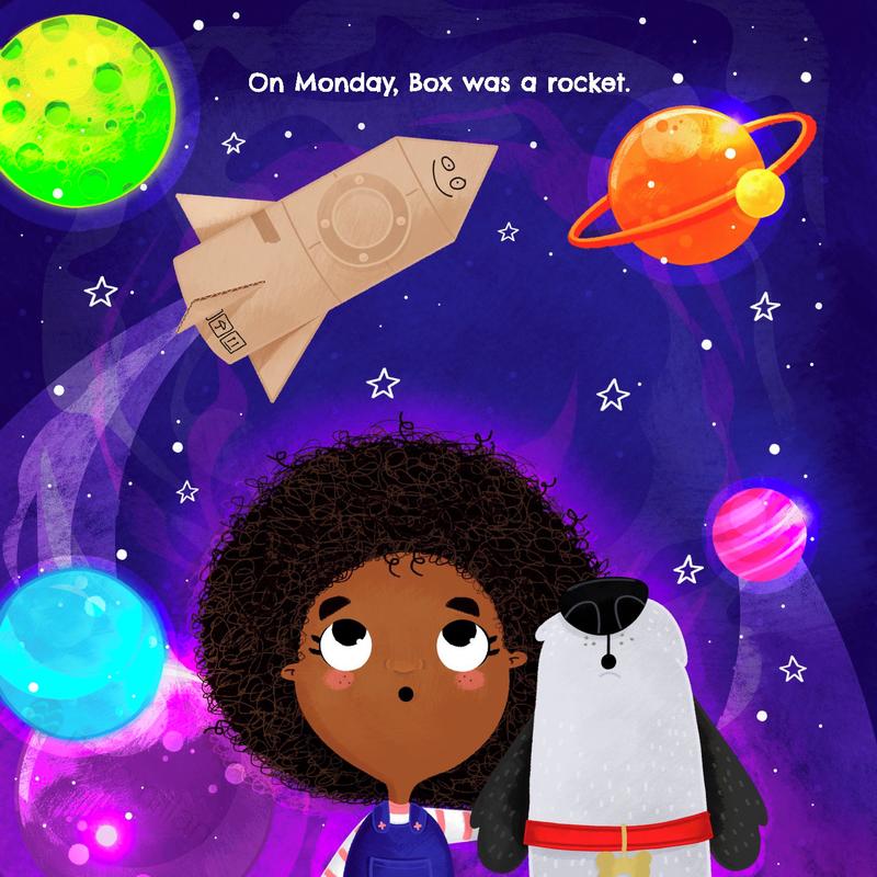 But on Sunday, Grace notices something’s wrong with her buddy. Box has some rips and crumples that Band-Aids, ice packs, and rest on the couch can’t seem to heal. Grace certainly doesn't want these adventures to end, so she is determined to fix Box so that they can continue their play together!