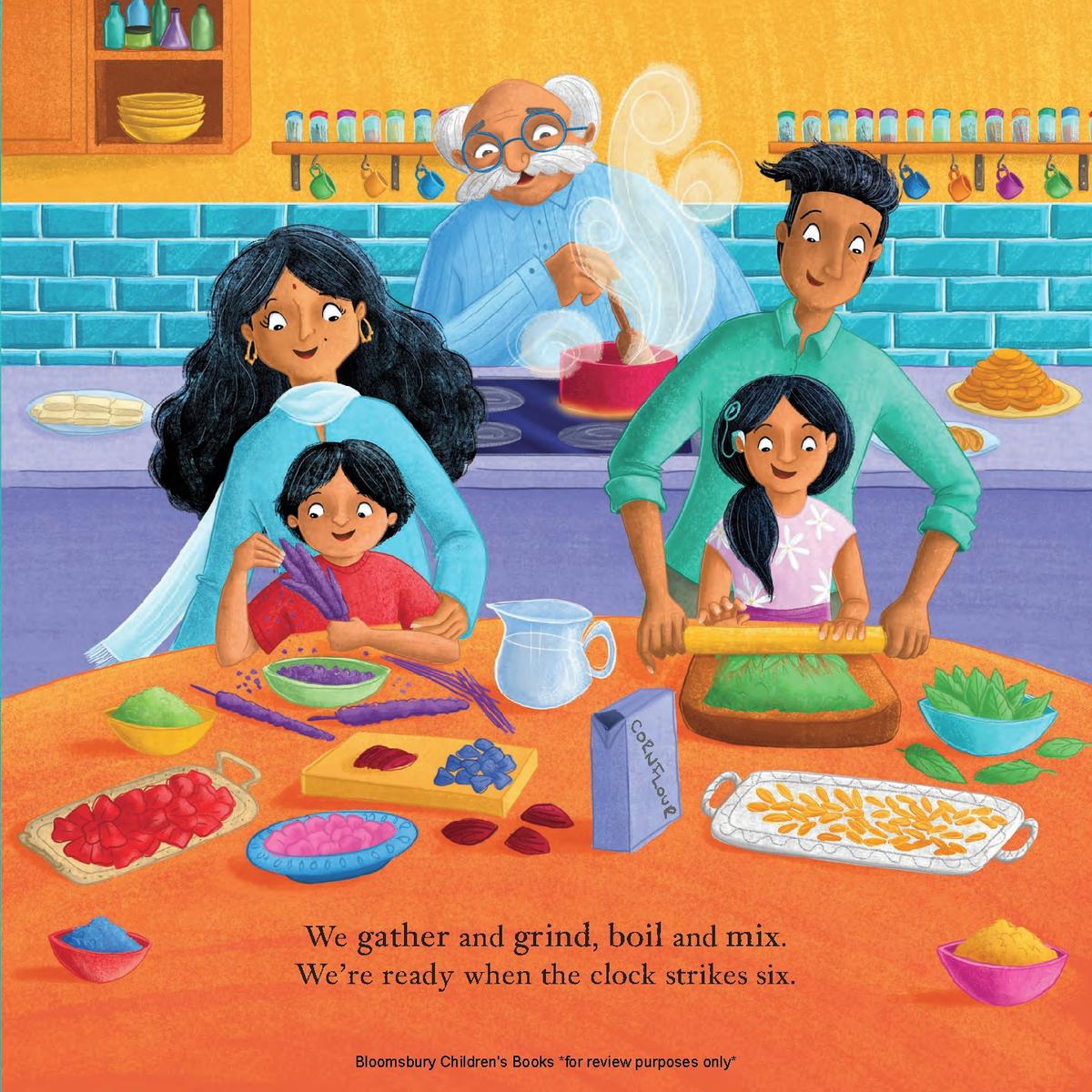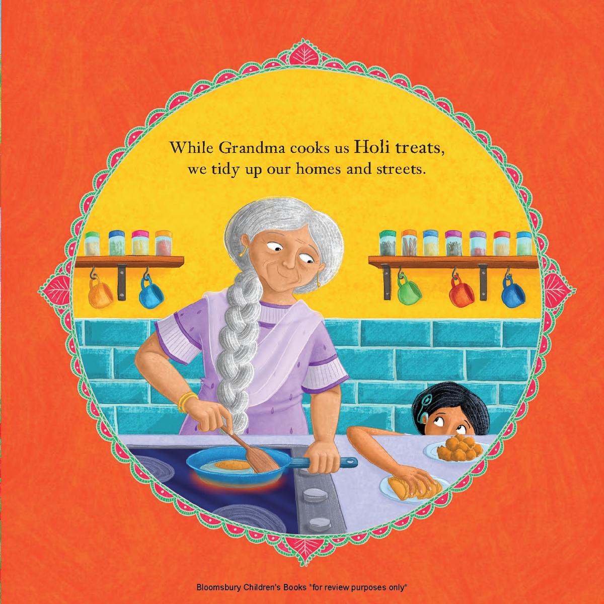 Swirling clouds of color. Sweet gujiya dumplings. Singing and dancing in the street. During this special time of year, friends and family come together to celebrate the arrival of spring and the triumph of goodness and love over evil. Young readers will delight in following two siblings as they enjoy all the wonderful traditions and treats Holi has to offer--baking and bonfires, stories and sweets and, of course, a wild day of fun where people shower one another in brightly colored powders!