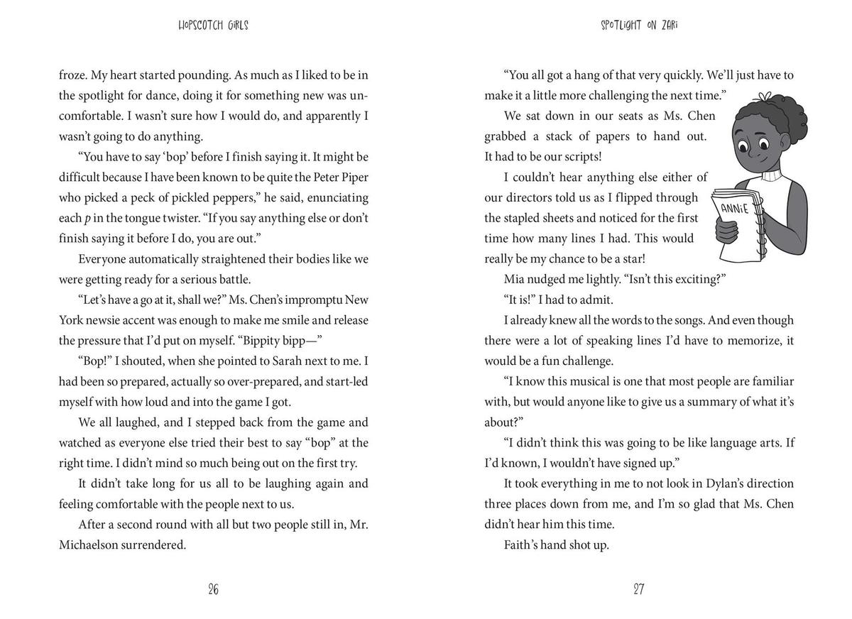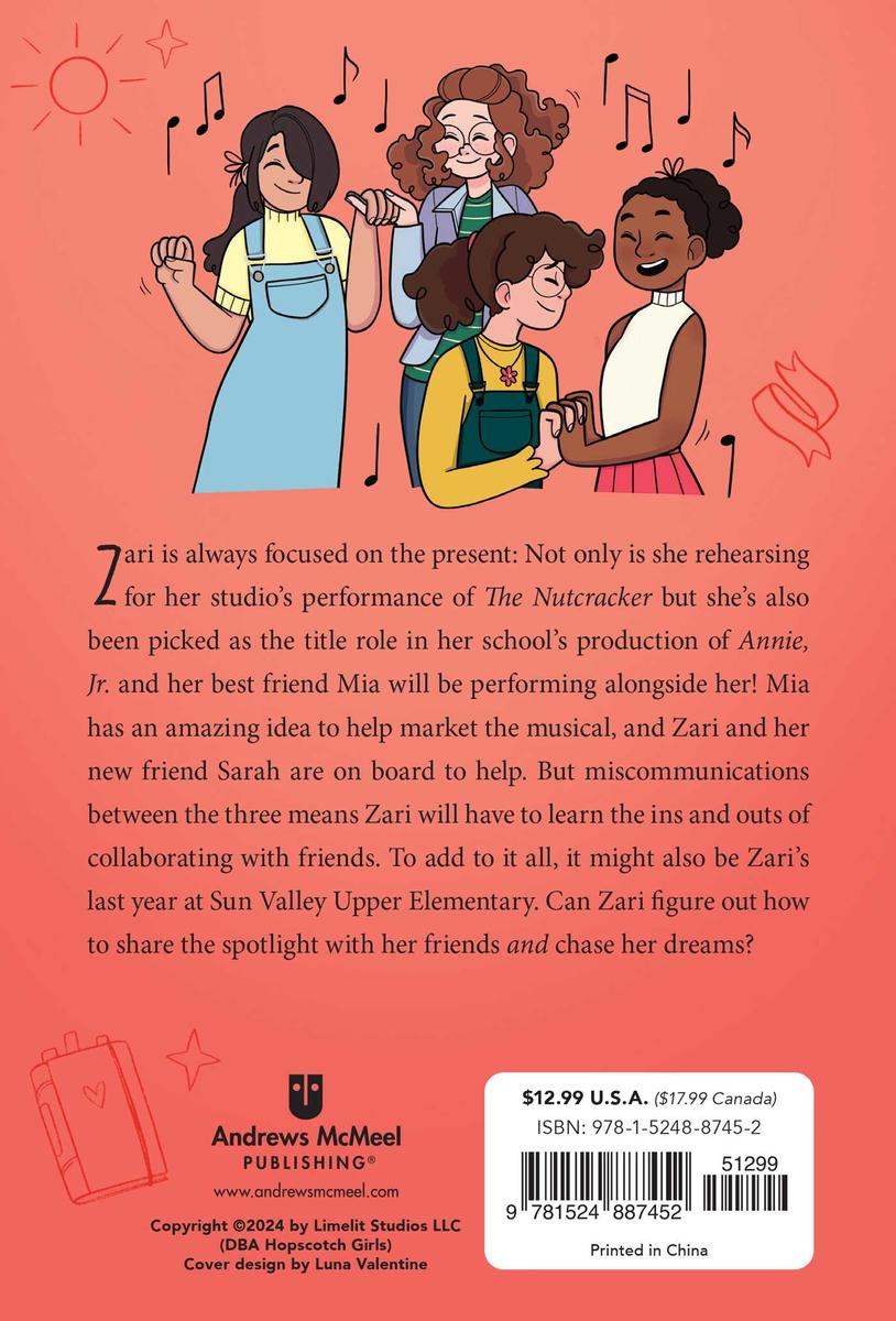 Meet Zari Tyler—prima ballerina, star performer, and the ultimate friend. She’s on a roll—not only is she in a performance of The Nutcracker, but she’s been cast as the lead for her school’s production of Annie, Jr.! Now she just has to keep up with school rehearsals, dance practice, and helping market the musical with her best friend Mia and her new friend Sarah. Easy! But collaborating with friends isn’t as easy as it sounds, and with both performances coming up, as well as this maybe being her last year going to the same school as her friends, it feels like time is running out faster and faster. Can Zari juggle it all, or is it already curtain call for her?