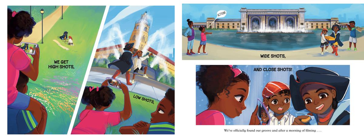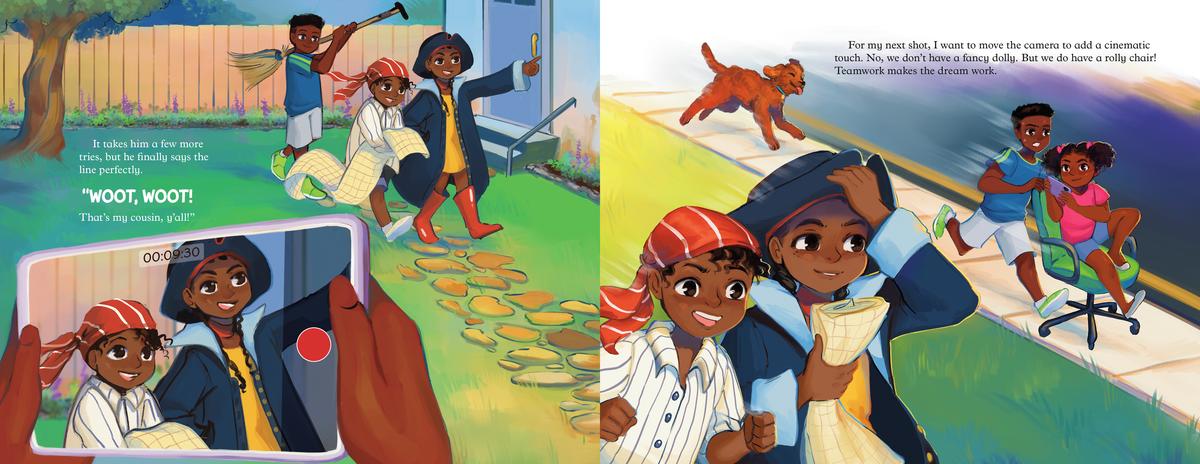 Norah Rose loves movies—action, comedy, drama—you name it! She dreams of becoming a director, but Hollywood feels a long way from home. When her grandpa falls ill, Norah decides to make a movie just for him, because no one loves a good story more than Grandpa. Armed with her mom’s phone, a head full of ideas, and the wide-open backdrop of Kansas City, Norah sets out to write, cast, shoot, and edit her very first film. There’s a lot of work ahead, but Norah’s sure of one thing: her movie is going to shine.