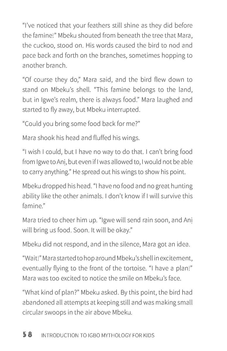 Immerse yourself in the vibrant world of Igbo heroes, deities, creatures, folktales, and myths, including Chineke the creator, Ana, Igwe, Anyanwu, Ekwensu, and more, plus the story of the first mermaid, the legend of Udenolu the shapeshifting crow, and the story of the tortoise and the Lion King.