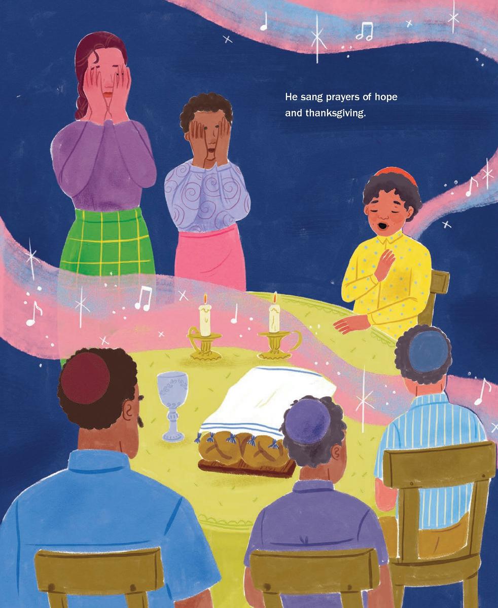 His African ancestors' music continues to touch Jason's heart and spirit, but he longs for a community where he can be his complete self. When he finds his way to services at a synagogue years later, can Jason learn to sing with his whole spirit, both Black and Jewish?