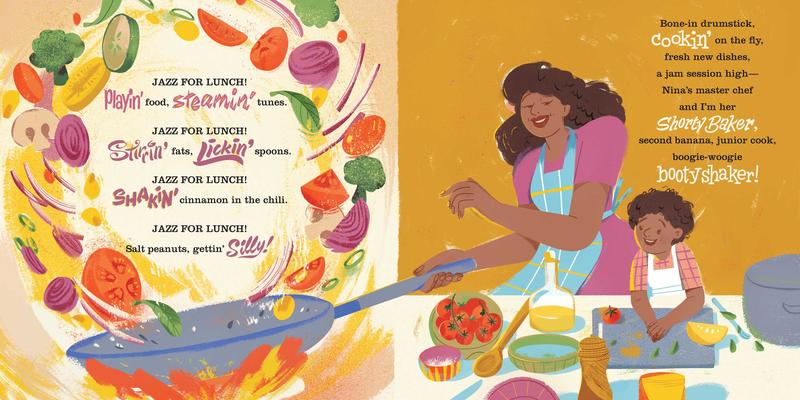 Come on in, sit right down! Cuz Auntie Nina and her nephew are cooking up a symphony of food and sounds. The lip-smacking smells and be-bopping tunes might just get the whole neighborhood shimmying over to join in. From Nat King Cole Slaw to Art Tatum Tots to Billie Hollandaise Sauce, get ready for some foot-stomping, finger-licking, booty-shaking, mouth-watering fun!