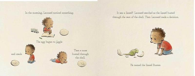 When Leonard takes a shortcut through the park, he finds an egg and takes it home, where it hatches into a lizard (or so Leonard thinks). Leonard names his new pet Buster and takes him all around the city: on the subway, to the library, to a baseball game, and more.
