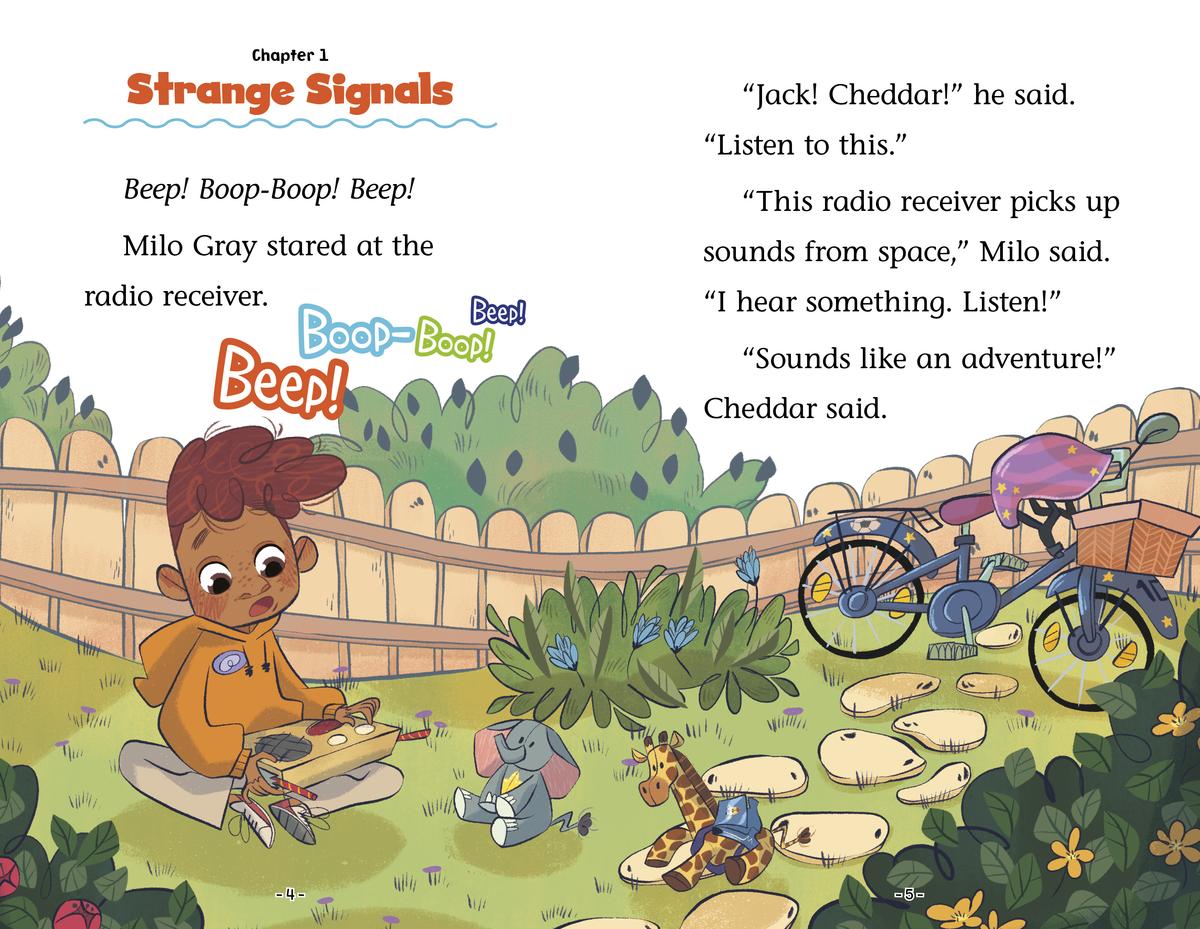 What does a boy with a fantastic imagination do when he hears a strange sound coming from his homemade radio receiver? He grabs his best friends and goes on a space adventure, of course! Join Milo, Jack, and Cheddar as they blast off in search of a mysterious signal. What amazing things will they discover on their imaginary outer space adventure?