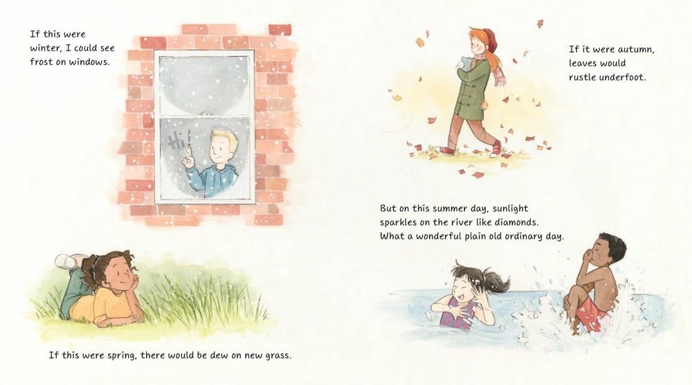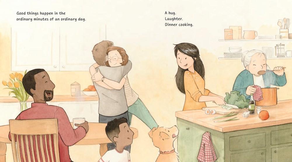 This is a book about mindfulness. About relishing the magic of the here and now. About enjoying the extraordinary unfoldings of an ordinary day. Moving from morning to night, the narrator becomes, by turns, boy or girl, of ever-changing ethnicity and ability, inhabiting city, country, or suburb. They are all children everywhere, opening themselves to the gift of time.