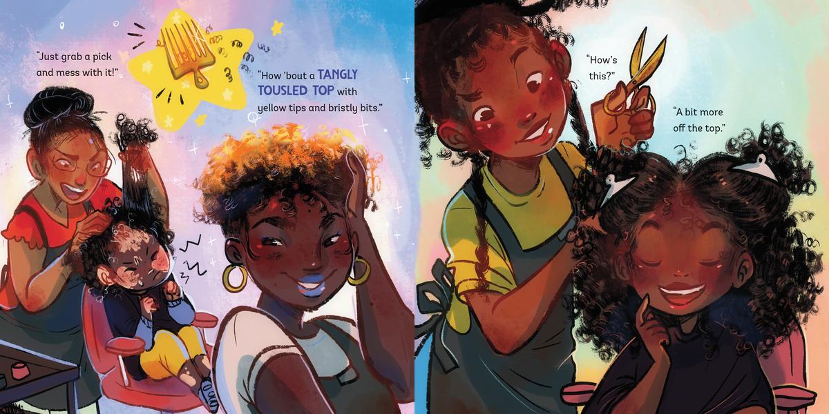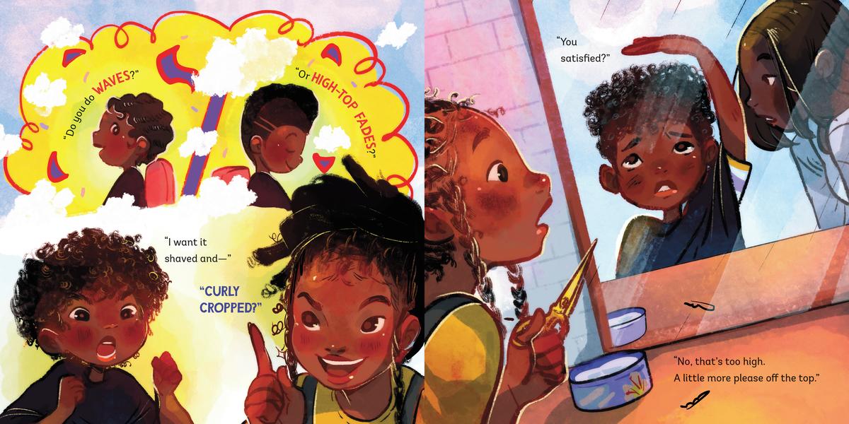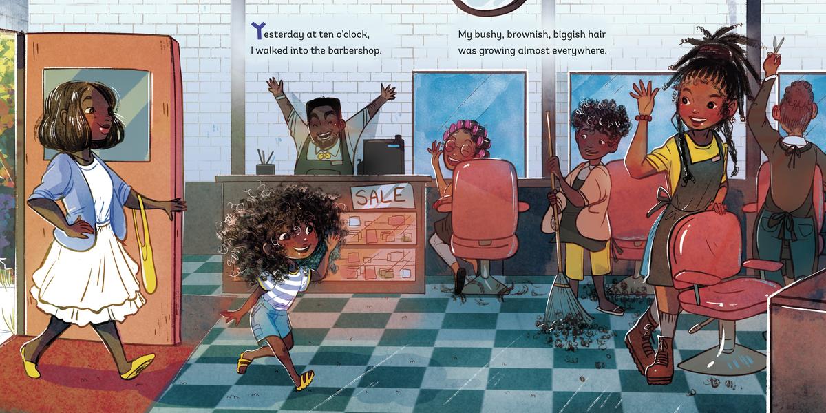 When a little girl walks into her local barbershop, she knows she wants the flyest, freshest fade on the block! But there are so many beautiful hairstyles to choose from, and the clients and her mother suggest them all: parts, perms, frizzy fros, dye jobs, locs, and even cornrows!