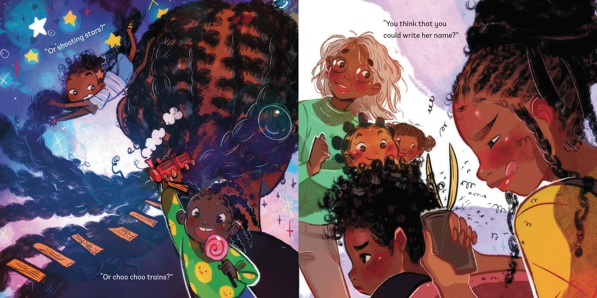 Author Shauntay Grant's sweet, rhyming story encourages young girls to be self-confident and celebrates the many shapes and forms Black hair can take. Through their stunning illustrations, Kitt Thomas is able to bring life and movement to the versatile styles featured in this book.