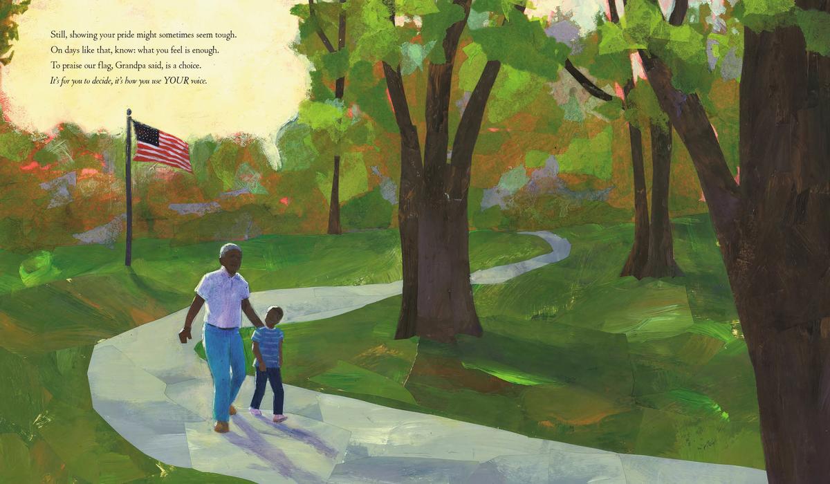 In this powerfully validating story that showcases many facets of Black American history through the eyes of a young Black boy in conversation with his grandfather, we are all invited to choose how to relate to America, and to the flag that means so many things to so many people.