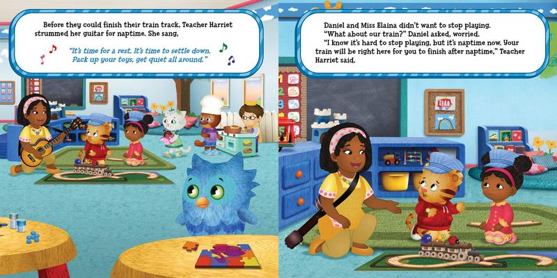 It’s quiet time at school, but Daniel and Miss Elaina don’t want to stop playing with their trains! Teacher Harriet shows the kids the different ways they can settle down, like stretching, reading a book, or closing their eyes. Could it be that naptime is just what Daniel needs to be reenergized for more playing? He might even be able to use his new skills at home to help his baby sister fall asleep for naptime.