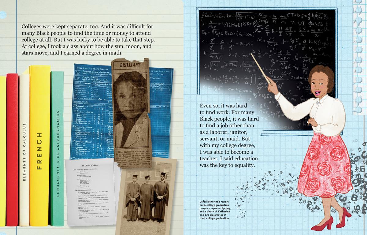 Johnson's own empowering narrative is complemented by the recollections of her two daughters about their mother's work and insights about how she illuminated their paths, including one daughter's fight for civil rights and another's journey to become a NASA mathematician herself. The narrative gracefully weaves together Johnson's personal story, her influence on her daughters' formative years, her and her daughters' fight for civil rights, and her lasting impact on NASA and space exploration. Filled with personal reflections, exclusive family archival photos, and striking illustrations, readers will be immersed in this deeply personal portrayal of female empowerment, women in STEM, and the breaking down of race barriers across generations. Historical notes, photo/illustration notes, and a time line put the story into historical and modern-day context.
