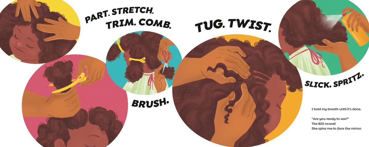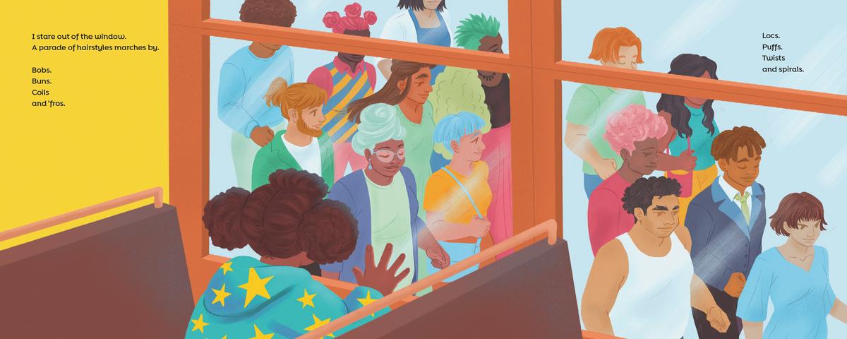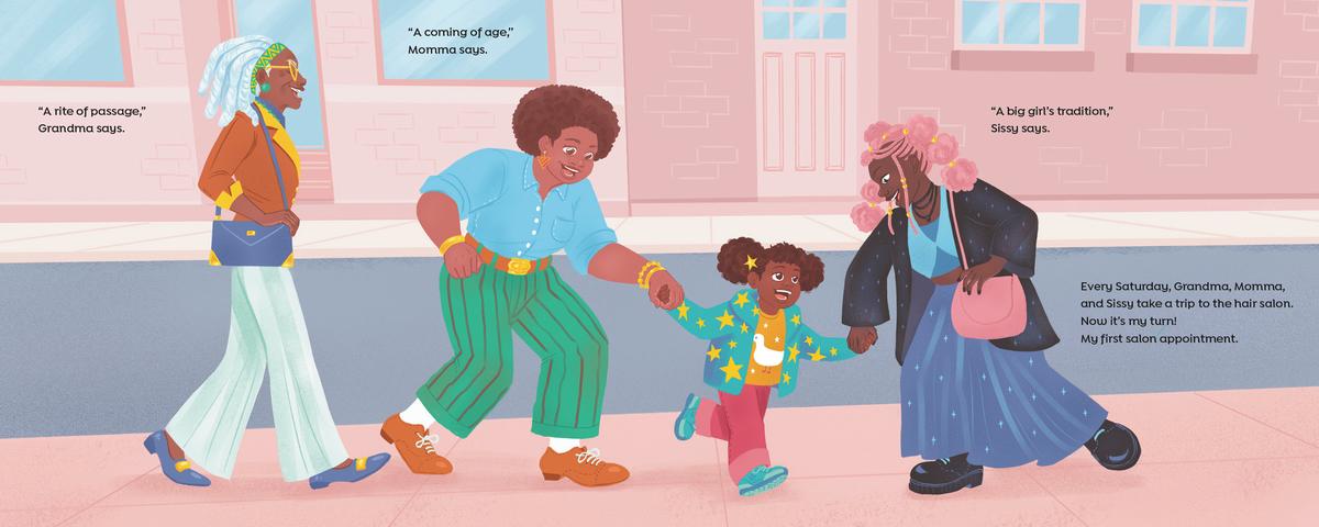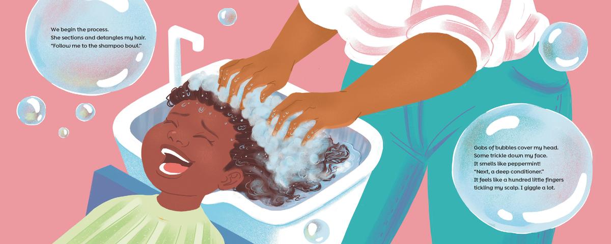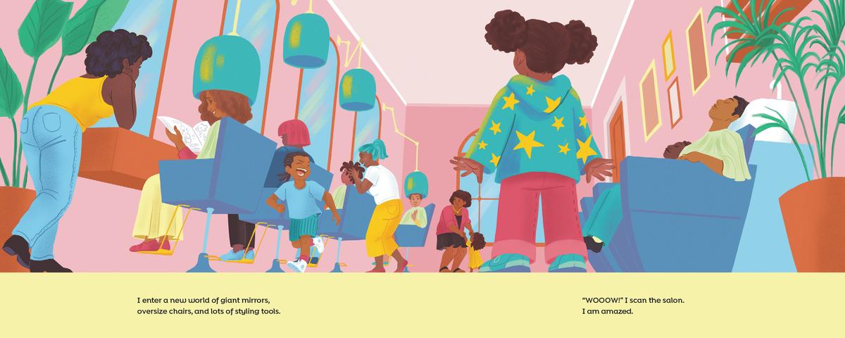 A picture book that celebrates the community built at the hair salon and the dynamic variety of natural hairstyles!