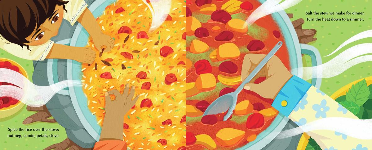 Sour Cherries follows a summer day as an Afghan child learns to make sour cherry jam, stew, and tea with his mother, just like she learned from her mother. Pull the stem, pop the seed—together, they carefully prep their family dishes while sharing stories of his grandmother and the place they come from.