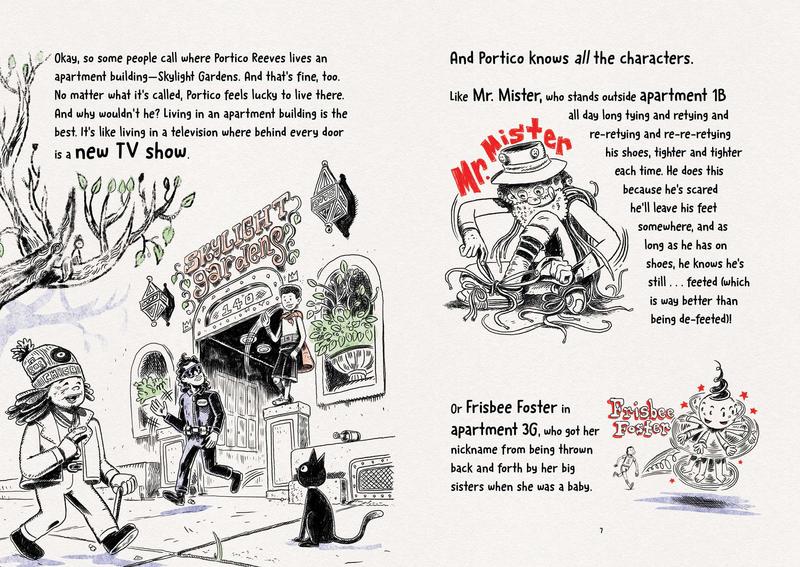 But his regular Portico identity is pretty cool, too. He lives in the biggest house on the block, maybe in the whole city, which basically makes it a castle. His mom calls where they live an apartment building. But a building with fifty doors just in the hallways is definitely a castle. And behind those fifty doors live a bunch of different people who Stuntboy saves all the time. In fact, he’s the only reason the cat, New Name Every Day, has nine lives.