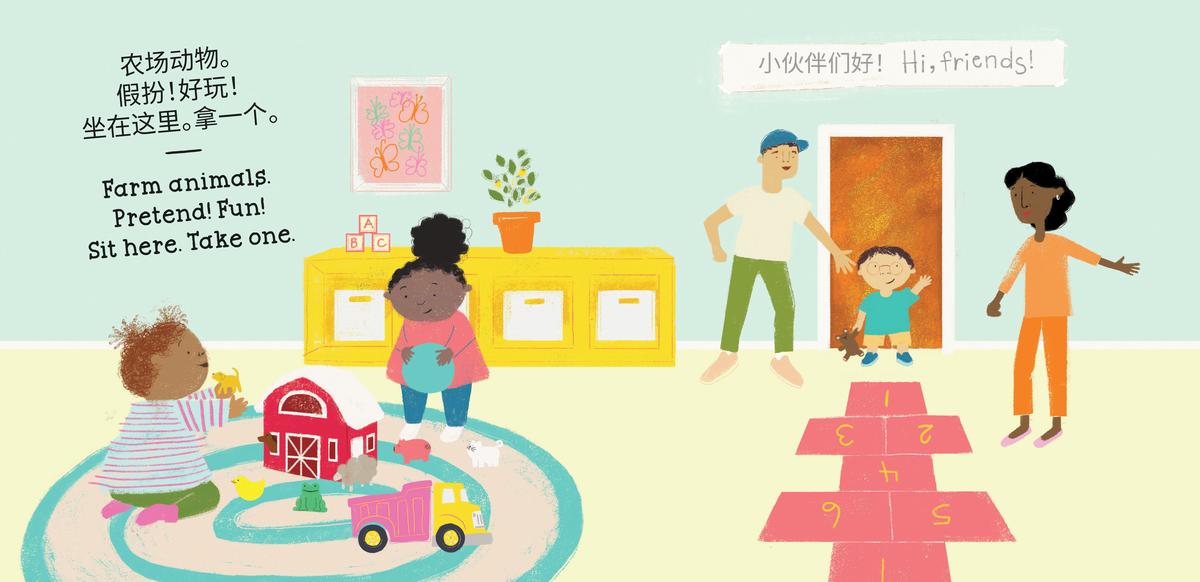 When one toddler in a childcare setting takes all the toy animals for herself, she discovers that monopolizing all the toys can be a bit lonely. Will offering one of the animals to another child help bridge the gap? Now available in bilingual Chinese and English, this gentle exploration of early friendship helps toddlers recognize the tension between wanting everything to be “mine!” and the desire to connect with other children.