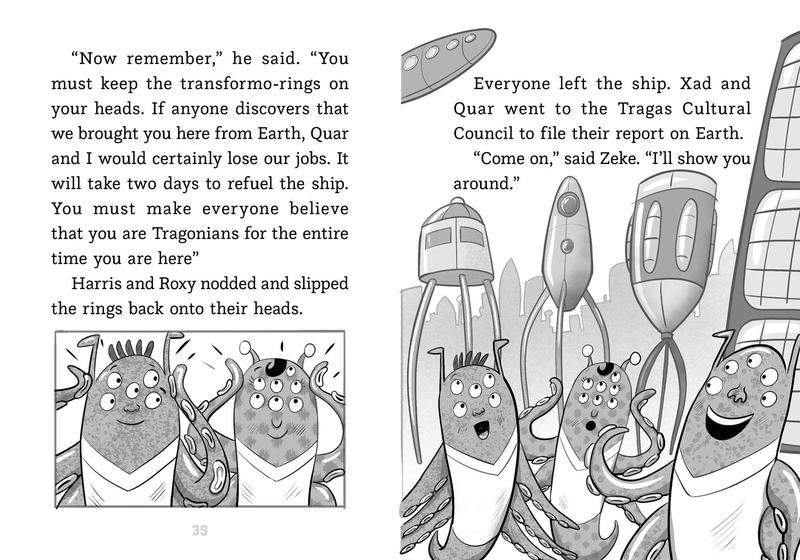 Harris and Roxy have hidden away on Zeke's family's spaceship and are headed to Tragas! Zeke's parents freak out when they discover the kids aboard, but they've come too far to turn back. So that gives Harris and Roxy two whole days to explore the alien planet with Zeke while the ship refuels before they all have to fly back to Earth. But, much like Zeke had to on Earth, they have to blend in. Will they be able to hide the fact that they're the aliens on this new planet?