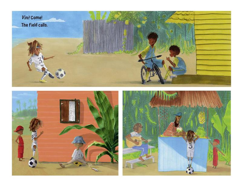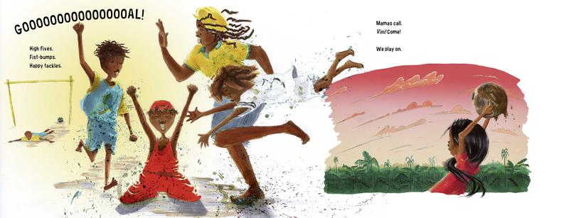 “Vini! Come! The field calls!” cries a girl as she and her younger brother rouse their community—family, friends, and the local fruit vendor—for a pick-up soccer (futbol) game. Children–young and old–players and spectators come running—bringing balls, shoes, goals, and a love of the sport.
