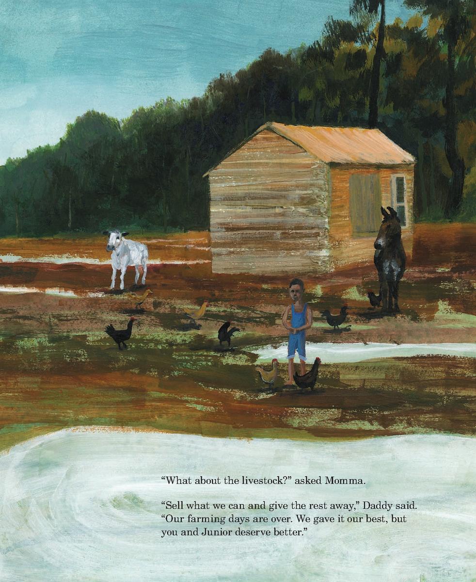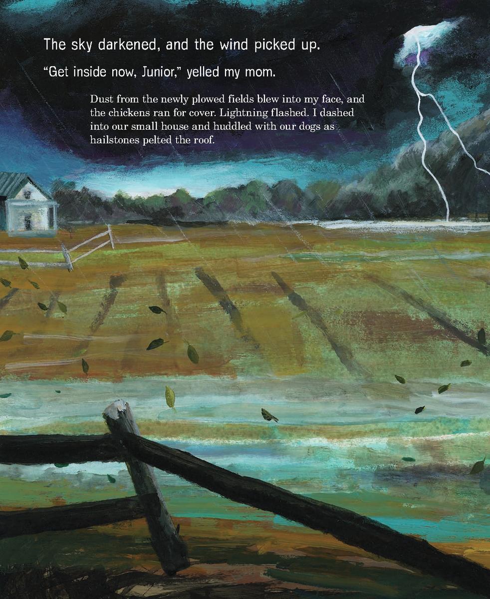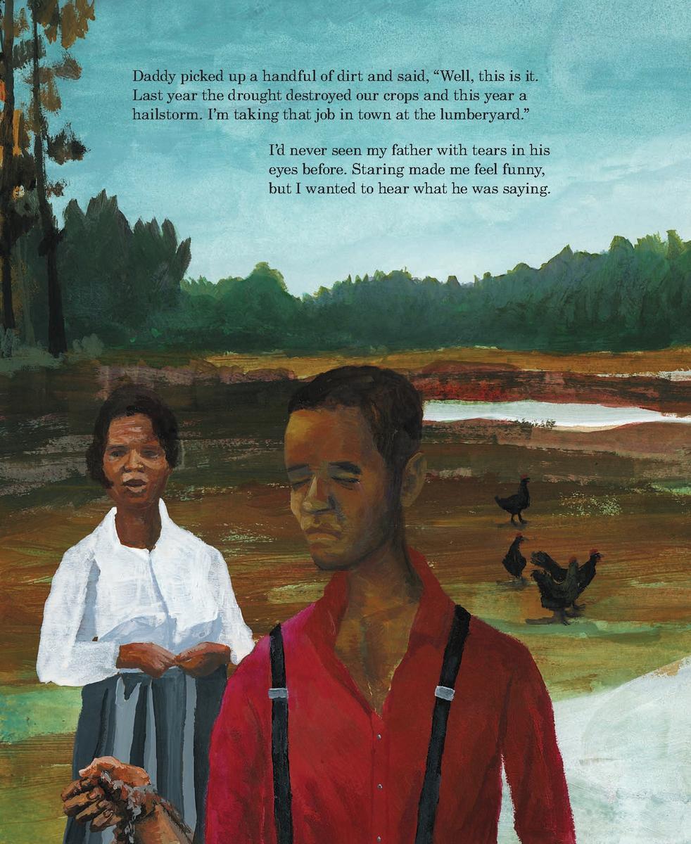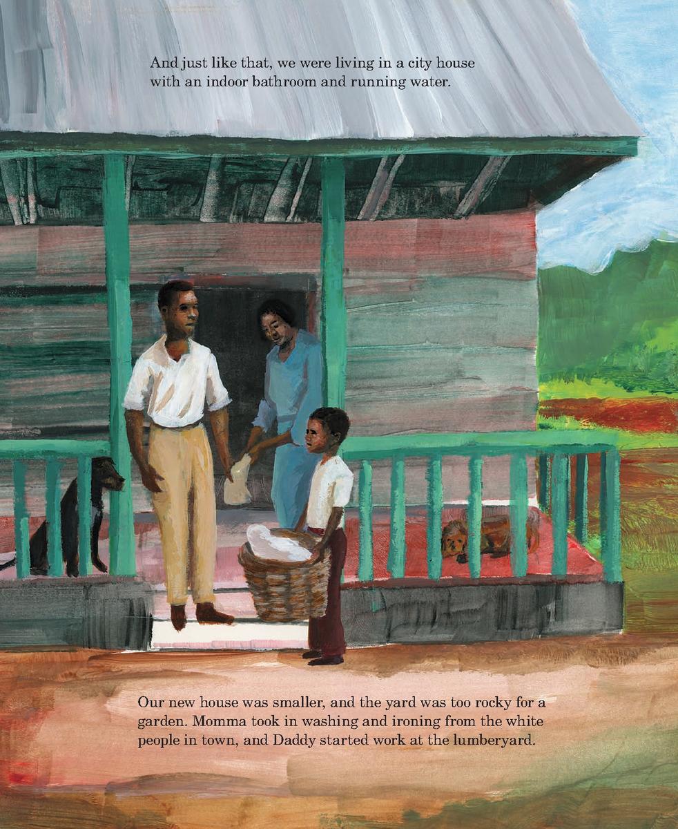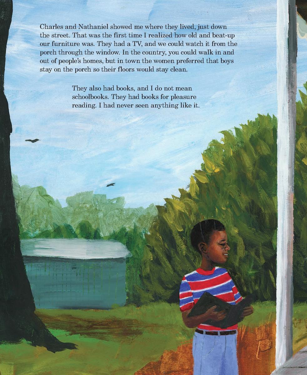 After a storm devastates the farm his parents have been renting, Junior moves with his family to Roxboro, North Carolina. The year is 1959, and the nine-year-old boy has to navigate the realities of the segregated South while adjusting to life in town. Instead of farming, his father works at the lumberyard, and his mother takes in laundry from the white people in town. Junior meets new friends who have a TV—and their own books! These new friends offer to take Junior to the library, and he’s surprised to discover that in a clearing in the forest, there’s a log cabin that houses a library for Black residents.The library in the woods feels magical, giving Junior a sense of possibility and community. The books he checks out also help him uncover a secret he never knew about his father.This fictional account is based on a real-life library author Calvin Alexander Ramsey frequented as a child. Ramsey’s heartfelt text, accompanied by illustrations from award-winning artist R. Gregory Christie, celebrates family, libraries, and the resourcefulness of the Black community.