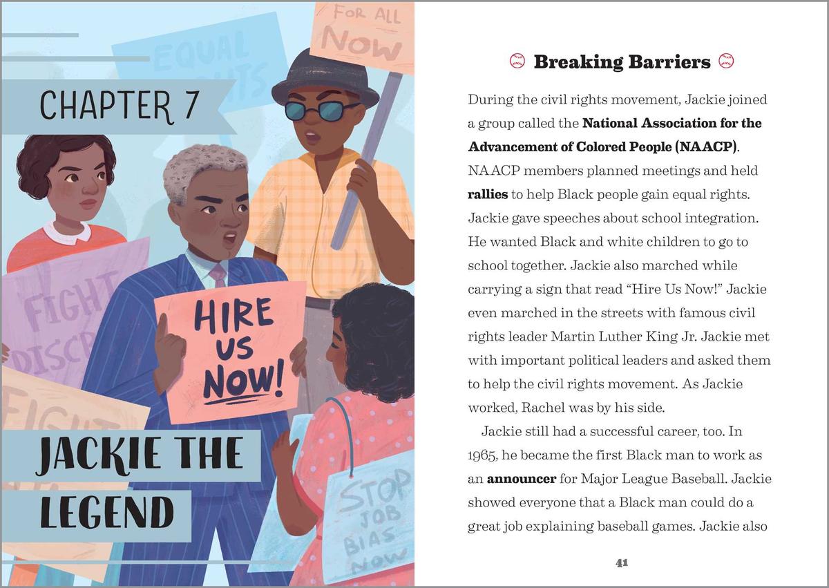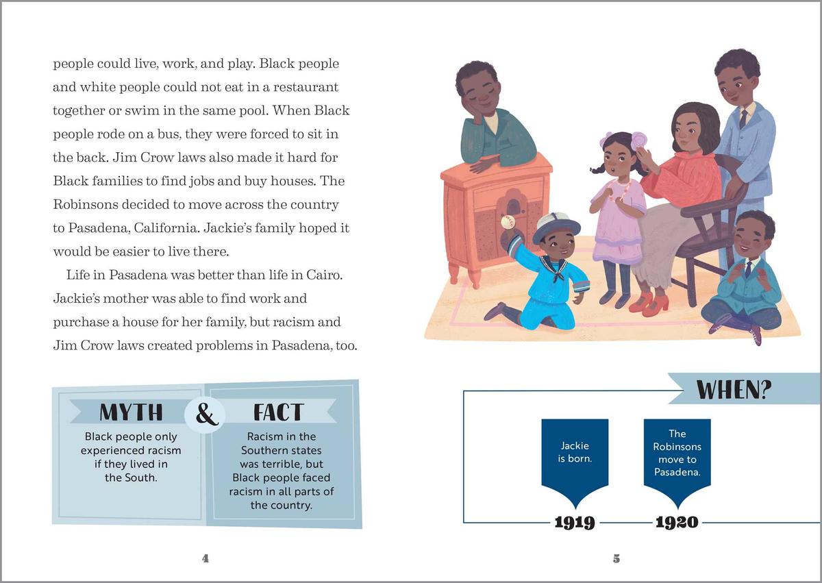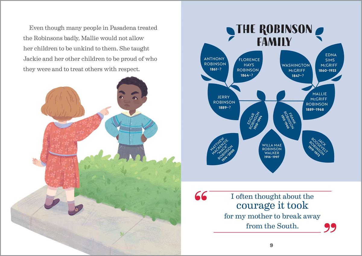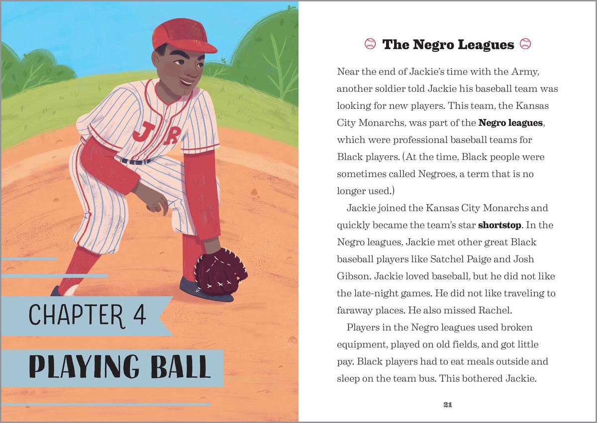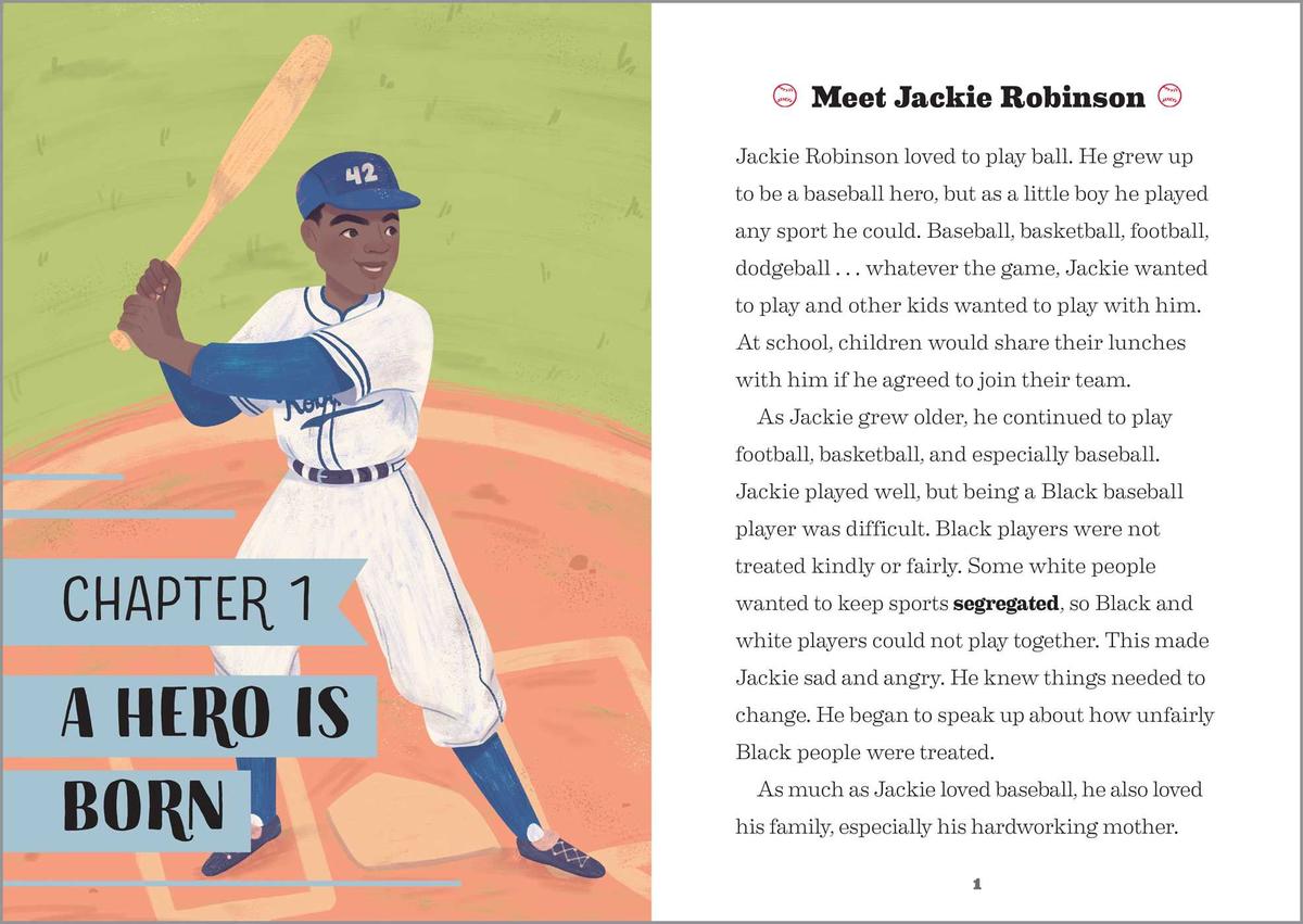 - Independent reading—This Jackie Robinson biography is broken down into short chapters and simple language so kids 6 to 9 can read and learn on their own.