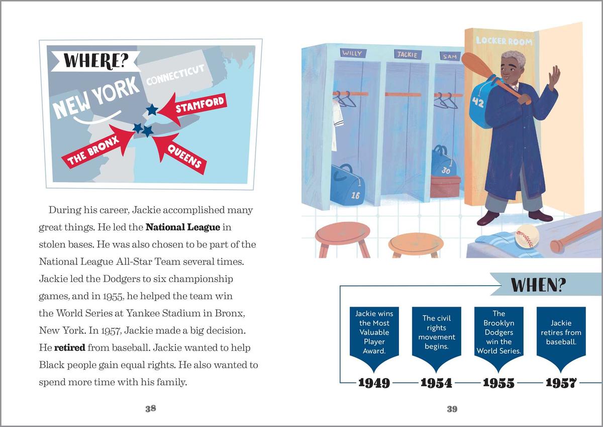- Critical thinking—Kids will learn the Who, What, Where, When, Why, and How of Jackie's life, find definitions of new words, discussion questions, and more.