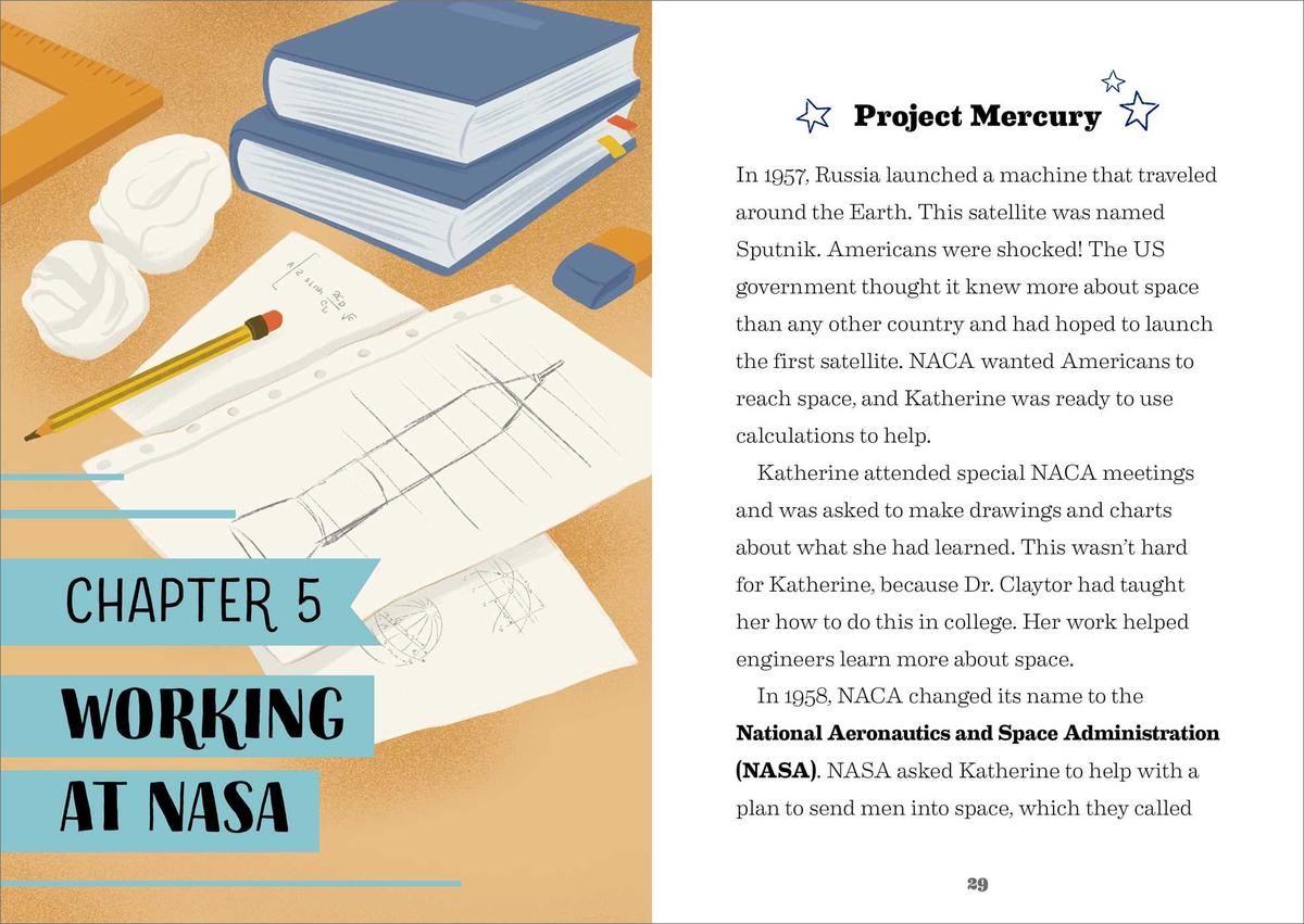 - Independent reading—This Katherine Johnson biography is broken down into short chapters and simple language so kids 6 to 9 can read and learn on their own.