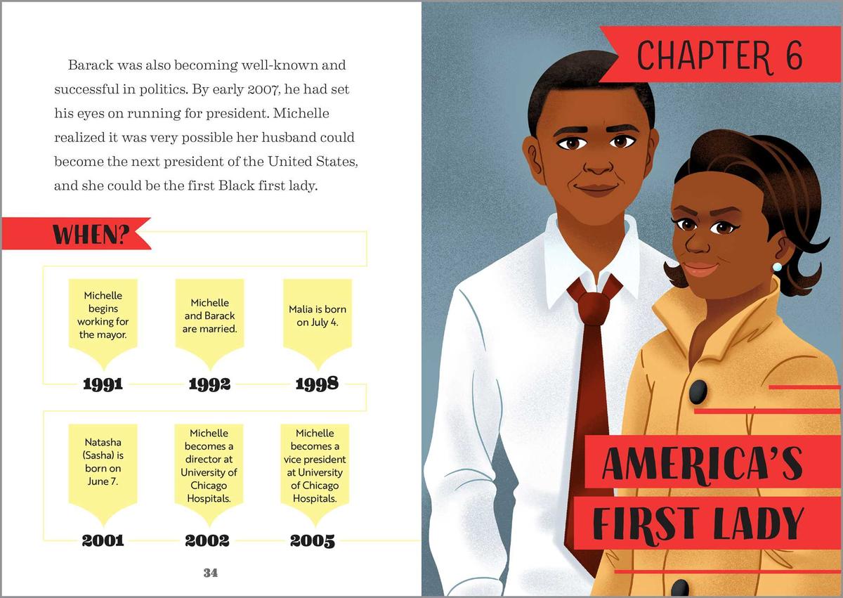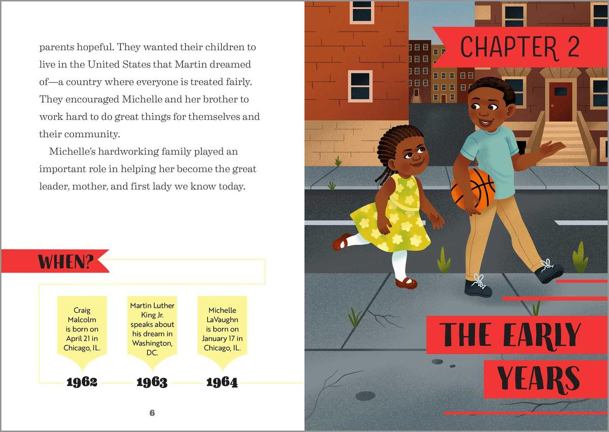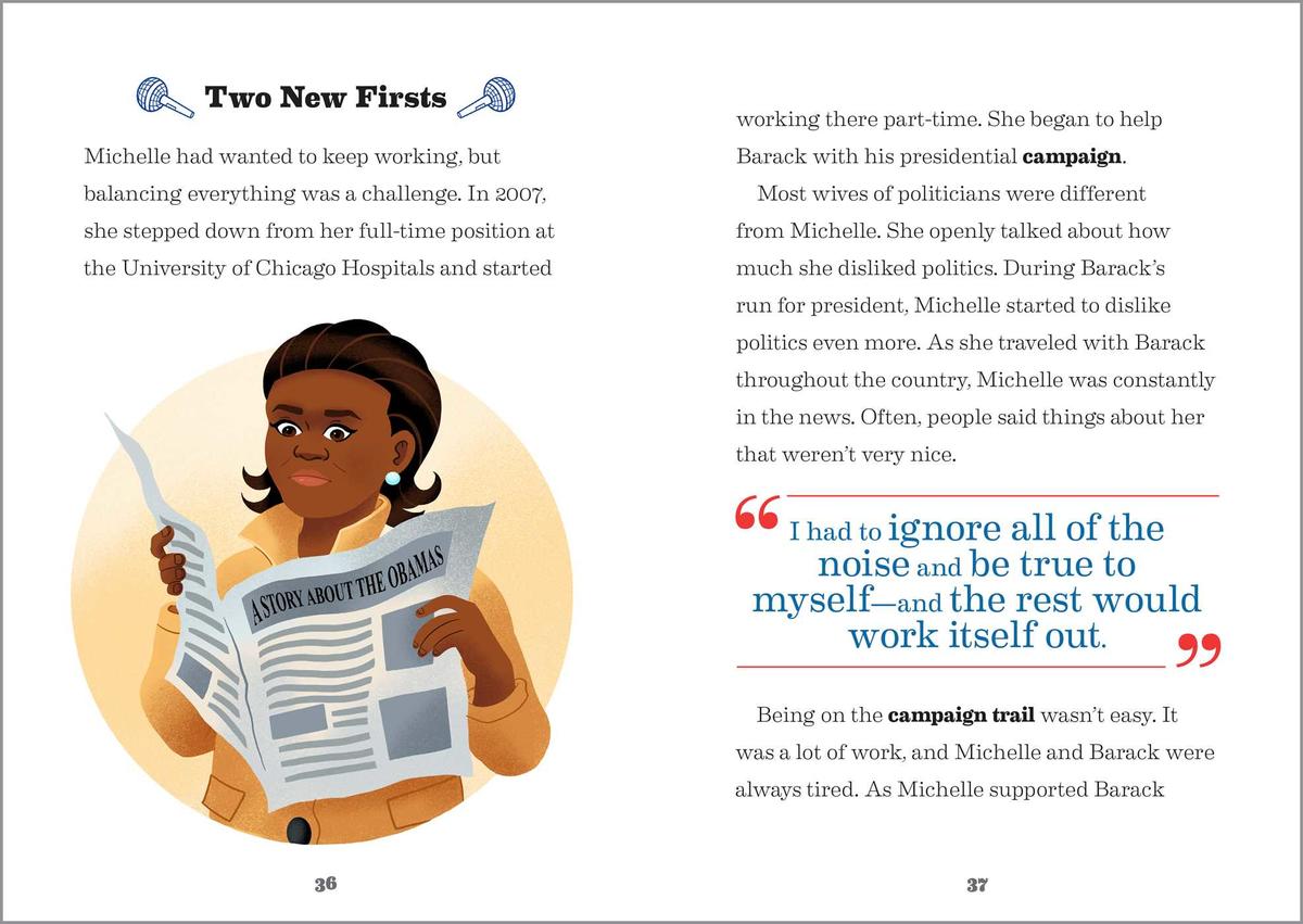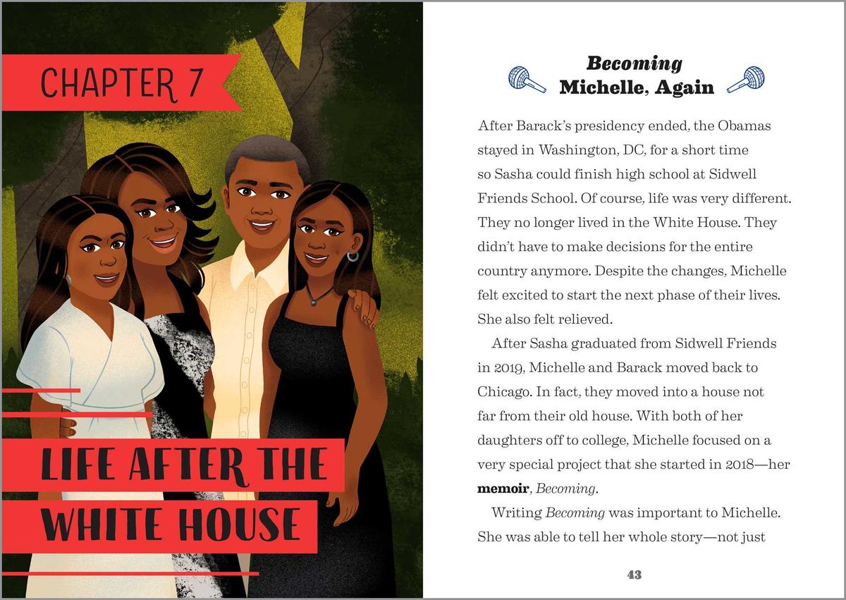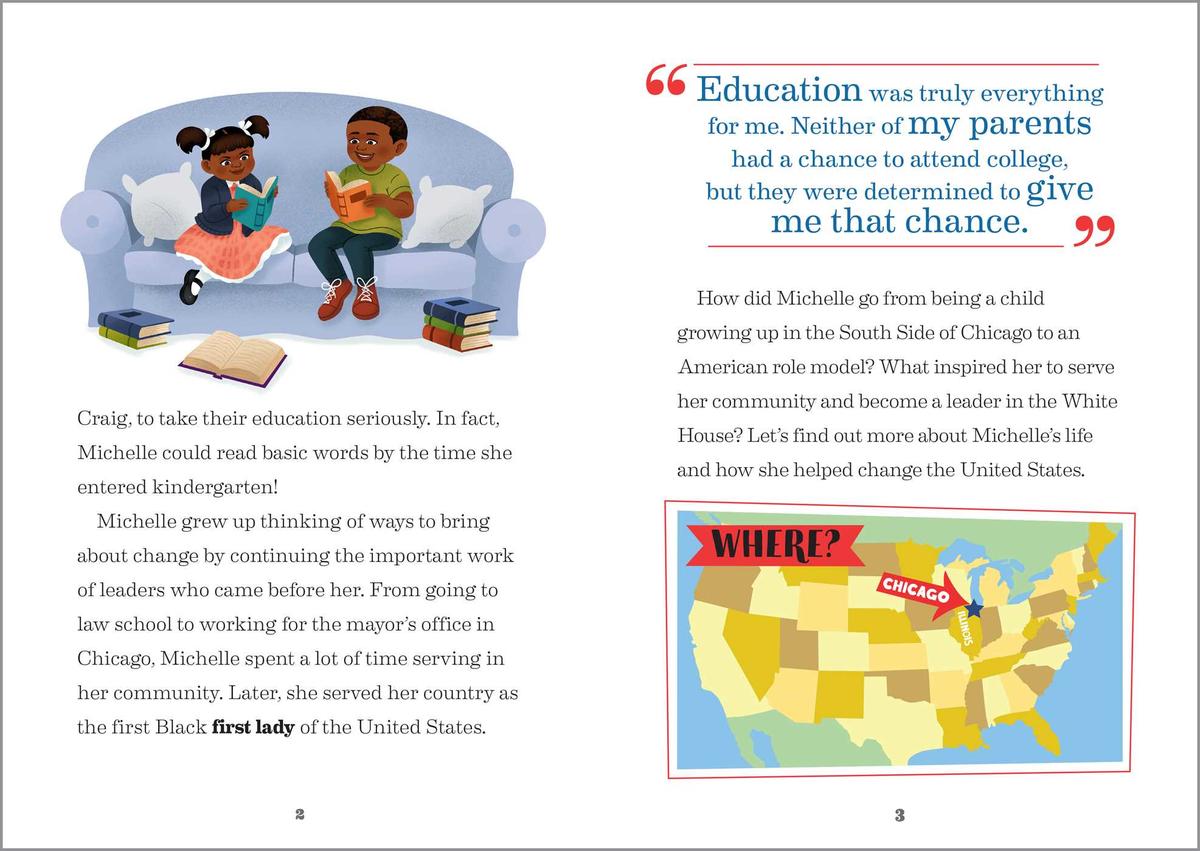 - Independent reading—This Michelle Obama biography is broken down into short chapters and simple language so kids 6 to 9 can read and learn on their own.