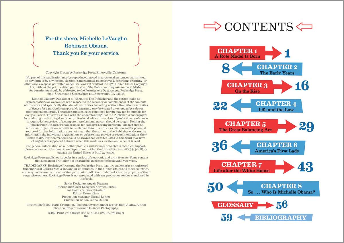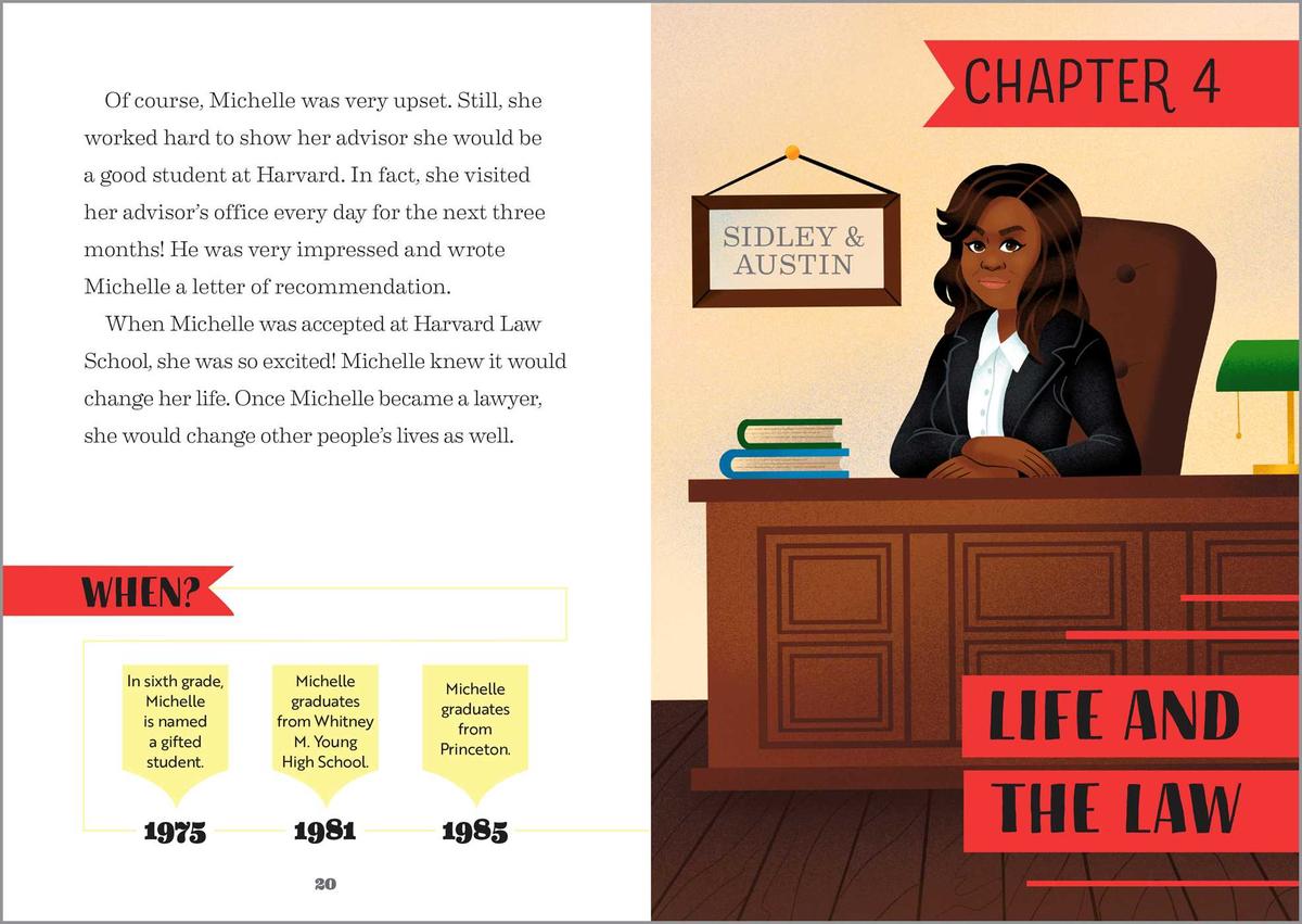 Michelle Obama is one of the most important women in American history. Before she served as the first Black first lady of the United States, Michelle was a smart and studious kid who wanted to give back to her community. She became a lawyer so that she could help people understand the law and get the legal aid they needed. When she became first lady, she continued to help people—especially young people—in many ways. Explore how Michelle went from being a young girl growing up on the South Side of Chicago to an American role model and leader in the White House.
