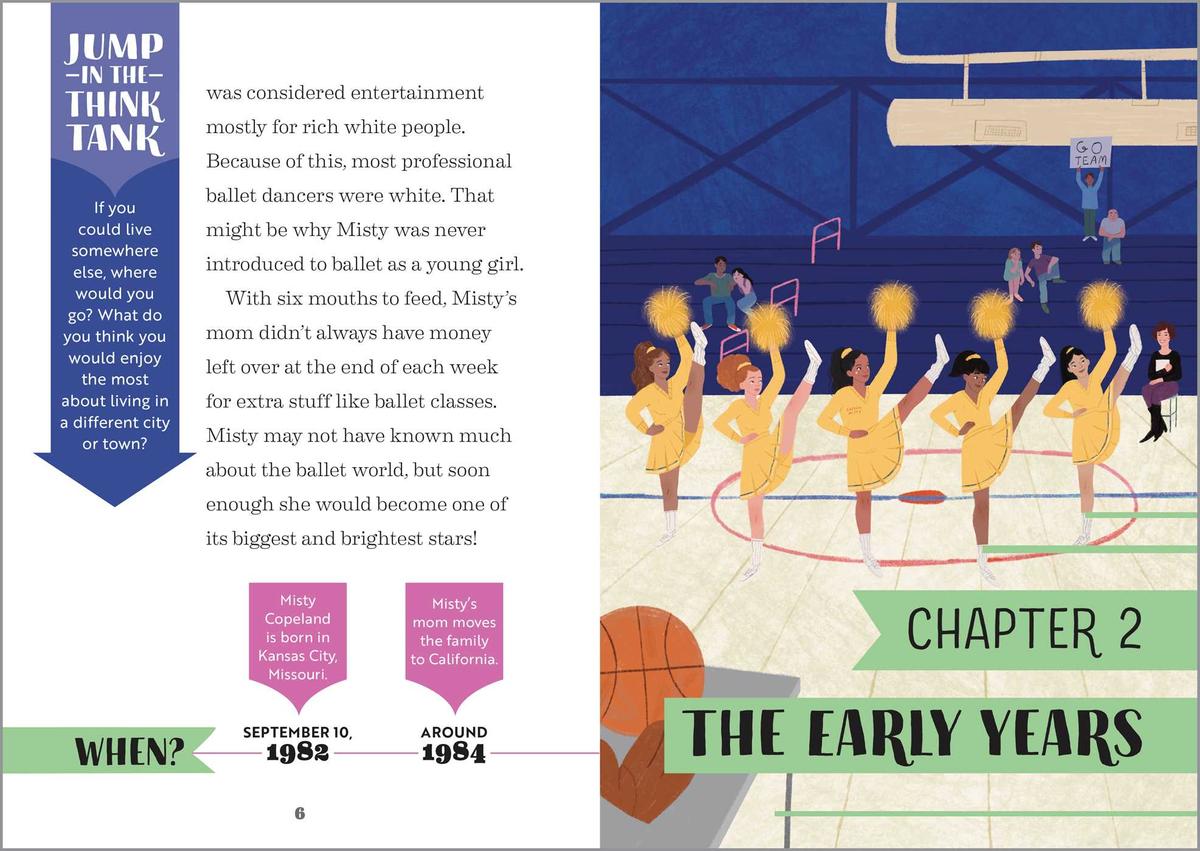 - Independent reading—This Misty Copeland biography is broken down into short chapters and simple language so kids 6 to 9 can read and learn on their own.