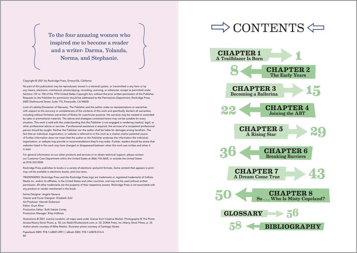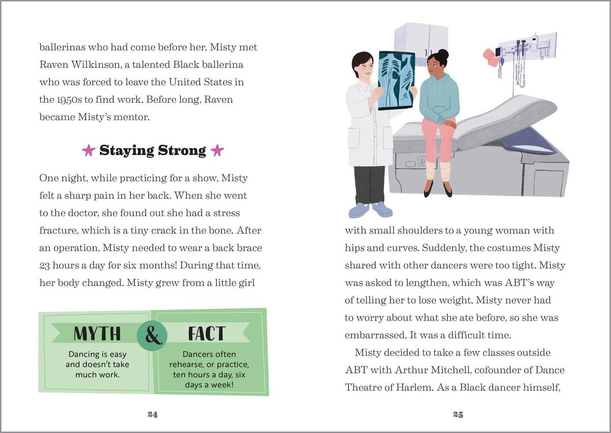 Misty Copeland is the first Black female principal dancer for the American Ballet Theatre. Before she made history as a ballerina, she was a determined girl who loved watching gymnastics and dancing on the drill team. This book explores how Misty went from being a shy young girl growing up in California to a world-famous ballet dancer and a role model to many people.
