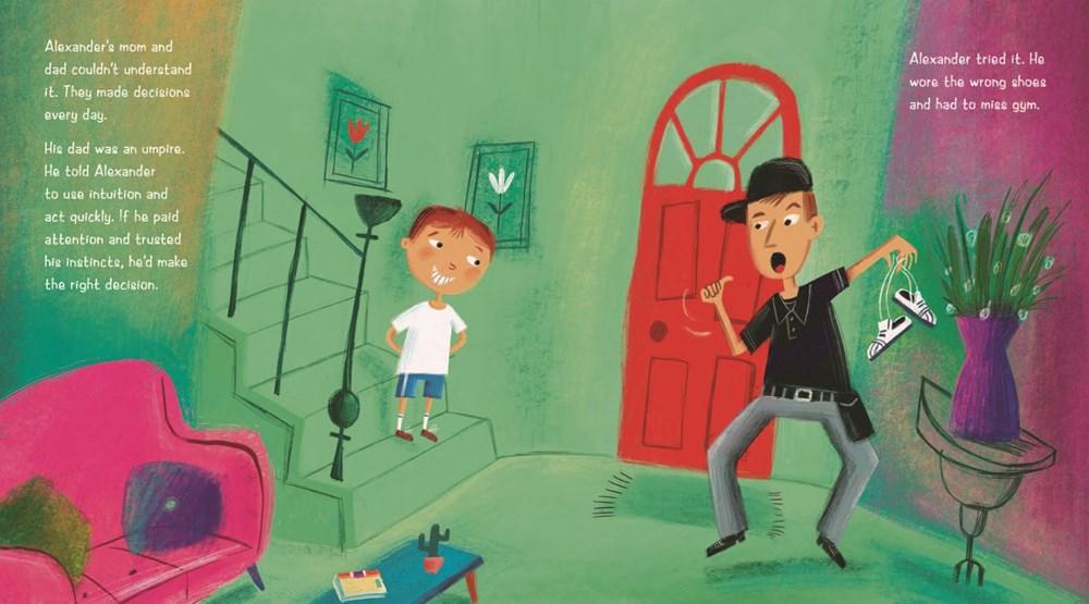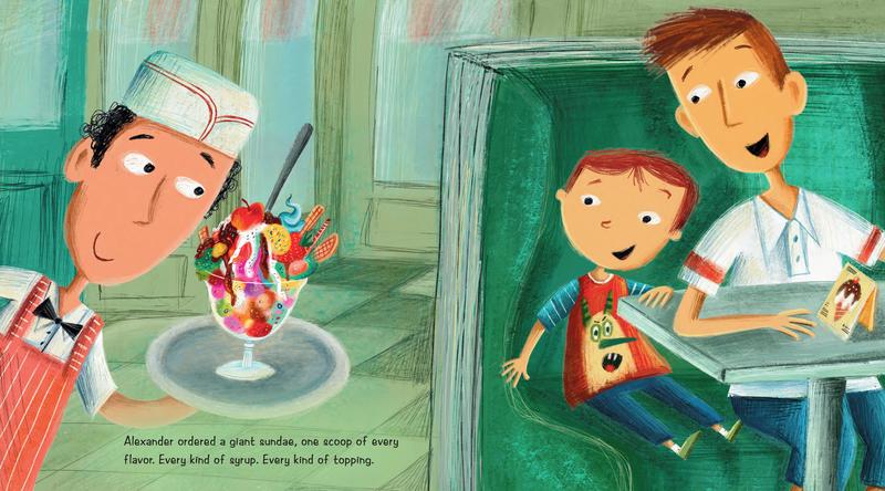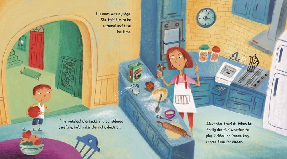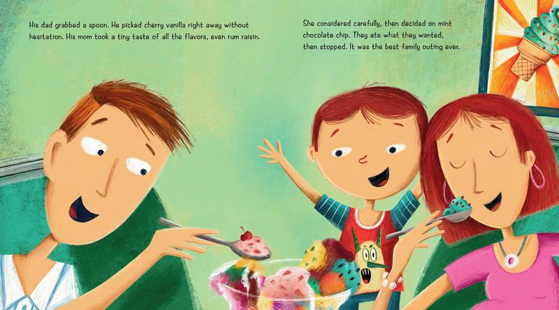 Alexander’s breakthrough comes on his birthday, when he asks for a sundae with everything but then realizes that chocolate swirl is all he wants. After that, Alexander finds his own decision-making style: not as deliberate as his mother or as quick to decide as his father, but somewhere in between. And when he tells his mom he wants a baby brother, he learns that sometimes “you get what you get, and that can be OK too.”