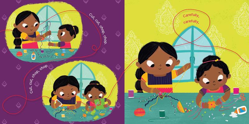 ), will have little ones singing along while they learn about Indian culture. And the vibrant illustrations by Zara Gonzalez Hoang will have readers wishing they could step right into the characters’ colorful crafting world.