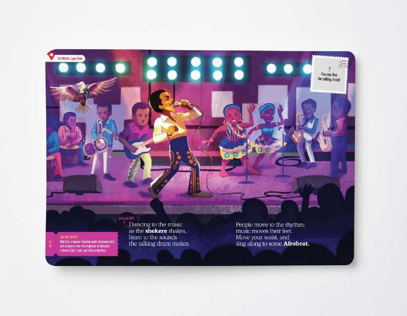 In Tiny Travelers Nigeria Treasure Quest, readers journey from bustling Abuja to the quaint lifestyle of the Gbagyi people. From the glitz and glam of Nollywood to the spiritual Osun-Osogbo Sacred Grove, Tiny Travelers will enjoy getting closer to Nigeria's sights, history, and culture, making magical discoveries along the way. Each illustrated spread invites children to discover hidden "treasures" — icons, animals, statues, instruments and more — that make up incredible Nigeria.