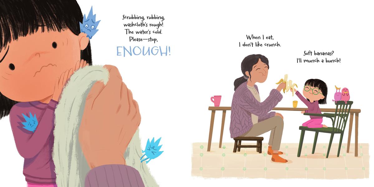 An extensive author’s note to caregivers and educators explores sensory systems, sensory processing issues, and specific information about how to support kids with overstimulated nervous systems as they learn to soothe themselves.