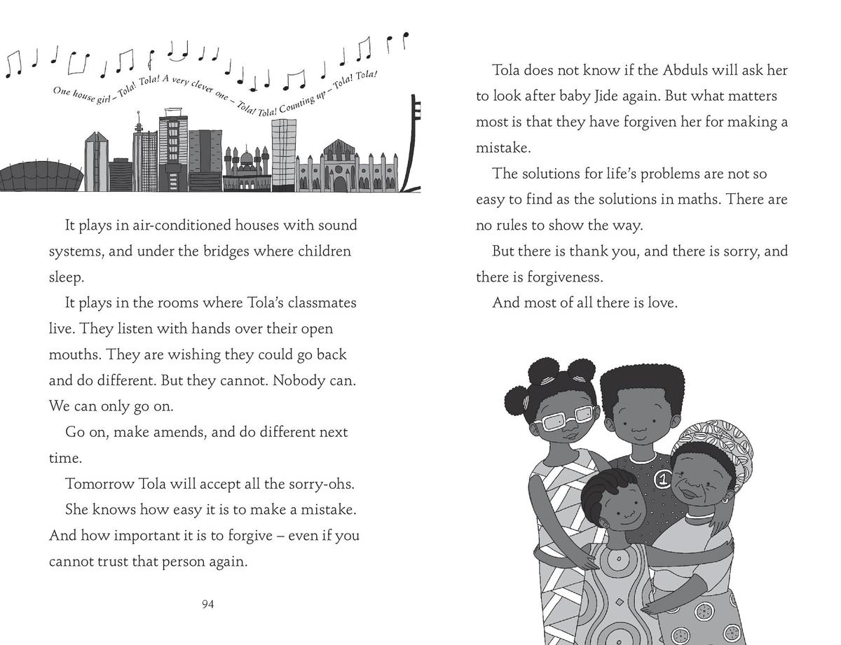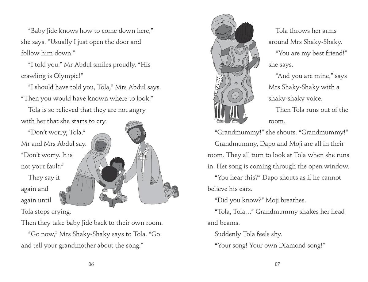 Lockdown is over and Too Small Tola is happy to be home with her family again in their apartment in Lagos, Nigeria. Tola loves solving problems, in both math and real life, and there are plenty of problems for her to tackle in their crowded building: Mrs. Shaky-Shaky is having trouble climbing the stairs to her apartment, Mr. and Mrs. Abdul need someone to watch sweet Baby Jide, and Grandmommy needs help deciding what to do on a day out with Tola. Luckily, Tola has ideas to help everyone! But how will Tola solve her own problem—the fact that her classmates don’t believe she worked for Mr. Diamond, the famous music star? One of the Odidi boys even calls her a liar! With support from her family, friends, and neighbors, Tola learns about true friendship and the power of self-belief. There’s no problem too big for Too Small Tola! Community, wit, and love abound in this latest story from award-winning author Atinuke, with whimsical illustrations by Onyinye Iwu.